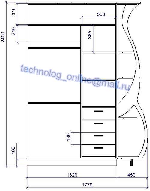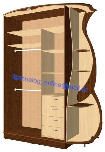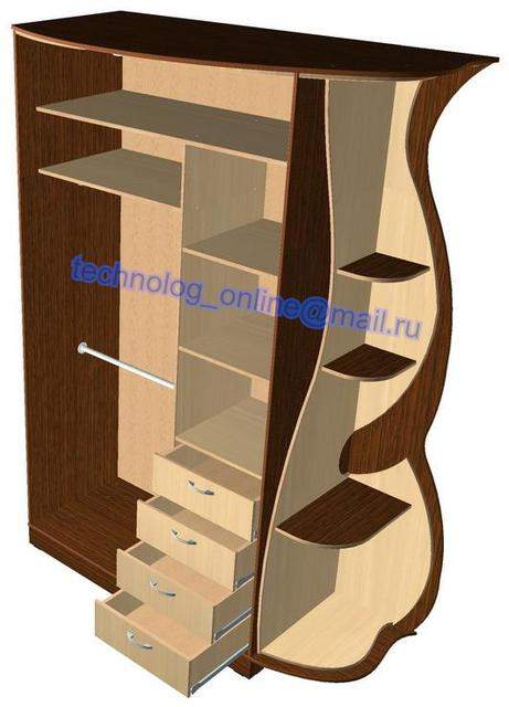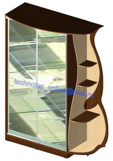 Я предлагаю готовую документацию (деталировка, кромкование, чертежи для сборки) для данного шкафа. Возможна корректировка под ваши размеры.