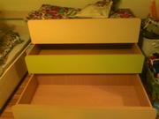 Двухъярусные 3500- размеры длина 120. ширина 70. Трехъмесные выдвежные 4000 - размеры длина 120. ширина 70. высота 90. В подарок полностью комлект( матрасики, одьялки и подушки)
