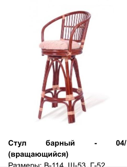 Стул барный, натуральный ратанг, сидение вращается. Индонезия. Новай, цвета: коньяк и кофе. Высота: 114см. длина: 52, ширина: 53