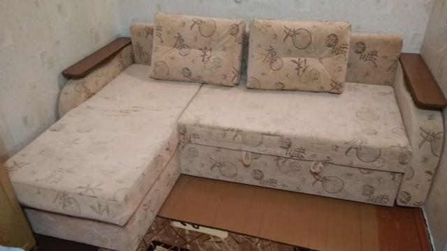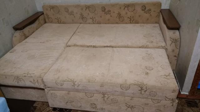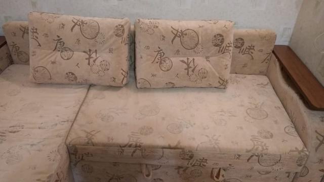 Угловой диван в очень хорошем состоянии.В комплекте имеются три подушки. Механизм трансформации дельфин. Имеется большой ящик для белья. Цвет бежевый