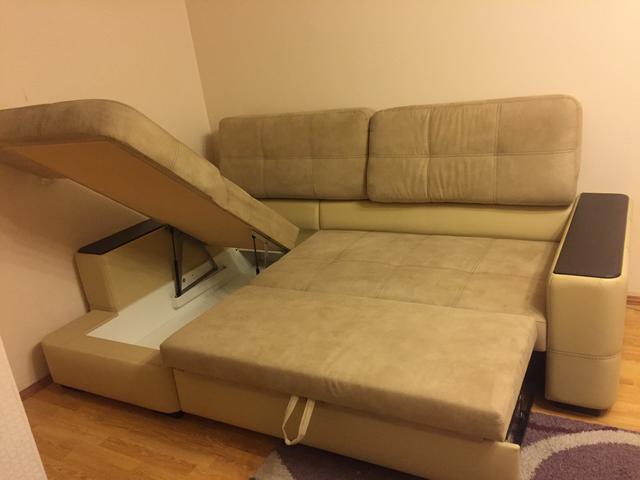 Раздвигается, есть место для хранения постельного белья с подъёмным механизмом, покупали год назад за 43000 руб, состояние отличное
