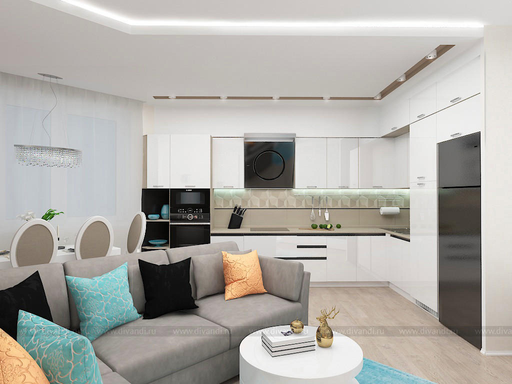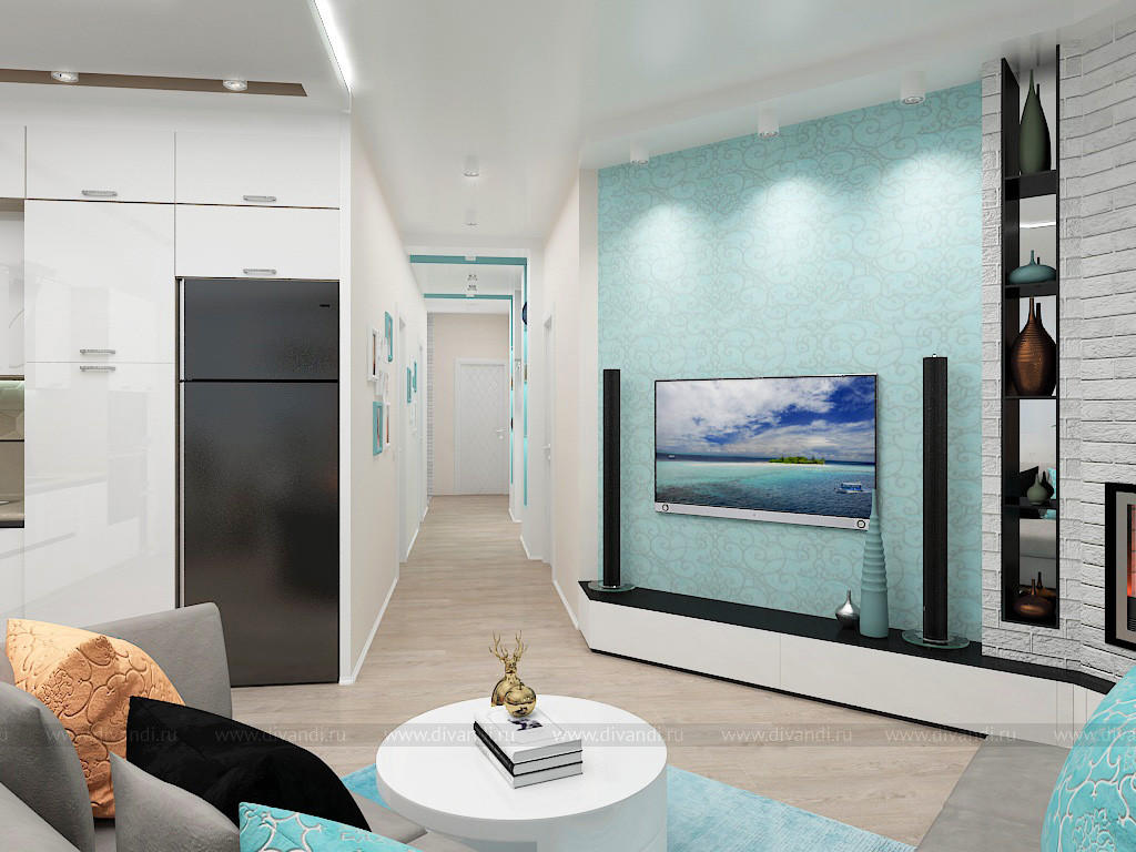 Интерьер 3-комнатной квартиры в ЖК Сочи для молодой семьи. В проекте использованы разные стили: Ар Деко, Английский, Современный.