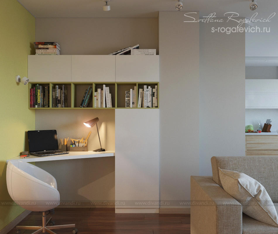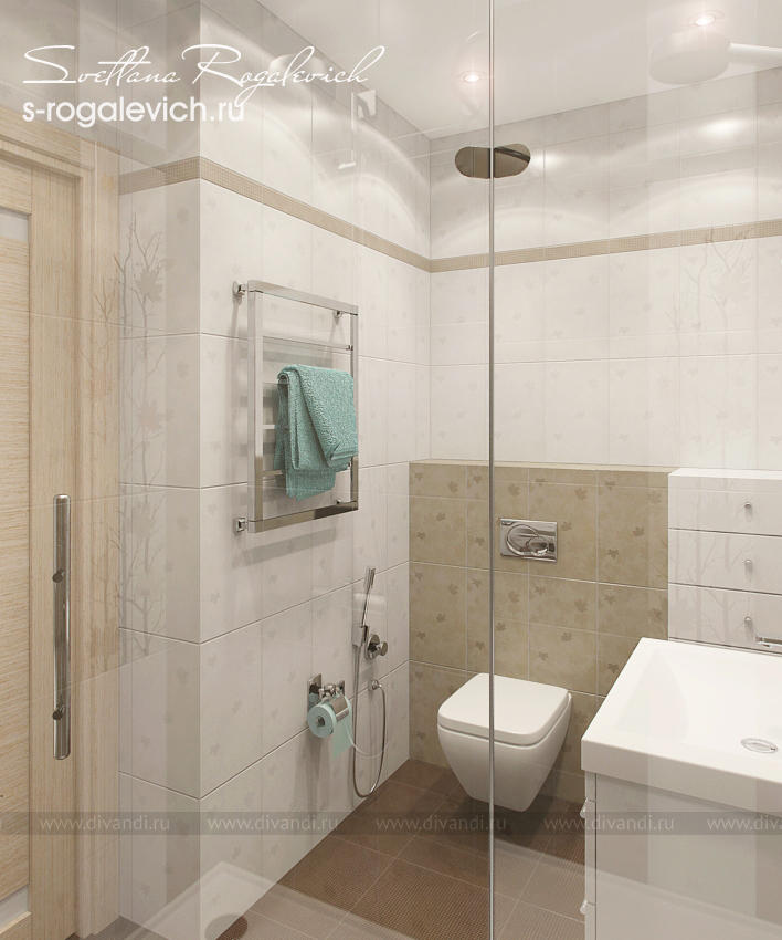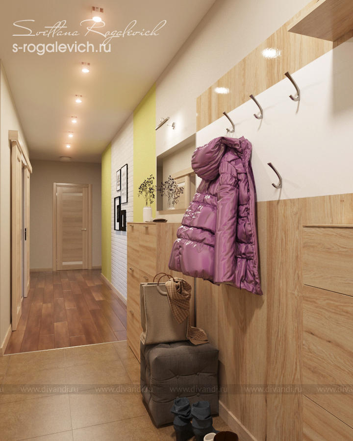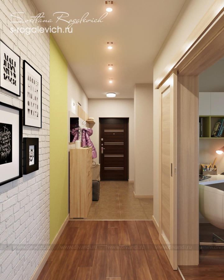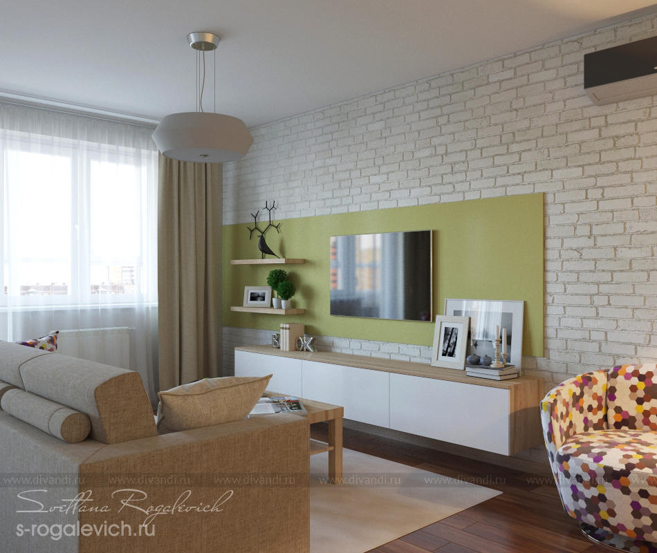 Дизайн-проект разработан для семьи из 3-человек. Заказчикам хотелось объединить гостиную с кухней и увеличить площадь санузла с целью размещения в нем душа.