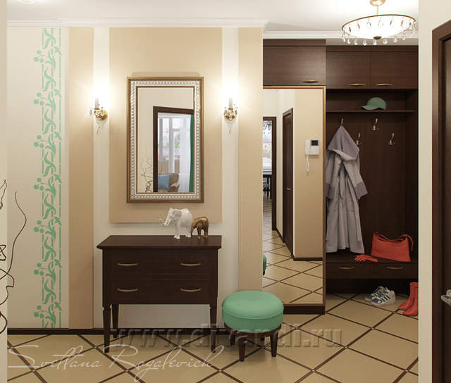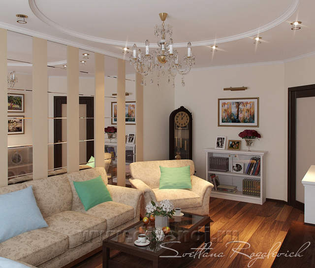Часть мебели, а также хрустальные люстры в гостиной и столовой - существующие. Использование их в новом интерьере - одно из пожеланий заказчиков.