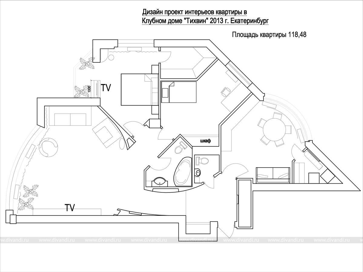 Дизайн и перепланировка квартиры площадь 118 кв.м. Клубный дом Тихвин. Проект 2013 года