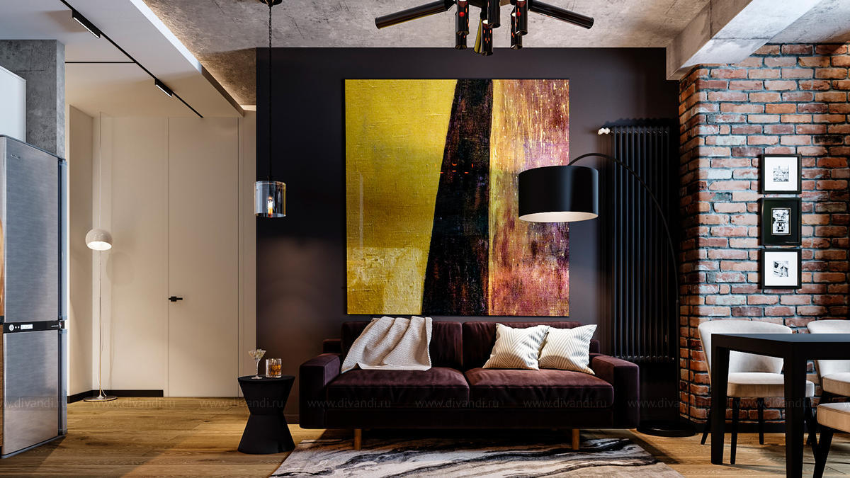 Дизайн гостиной-кухни в 3-х комнатной квартире, Москва, Ленинградский 29/2