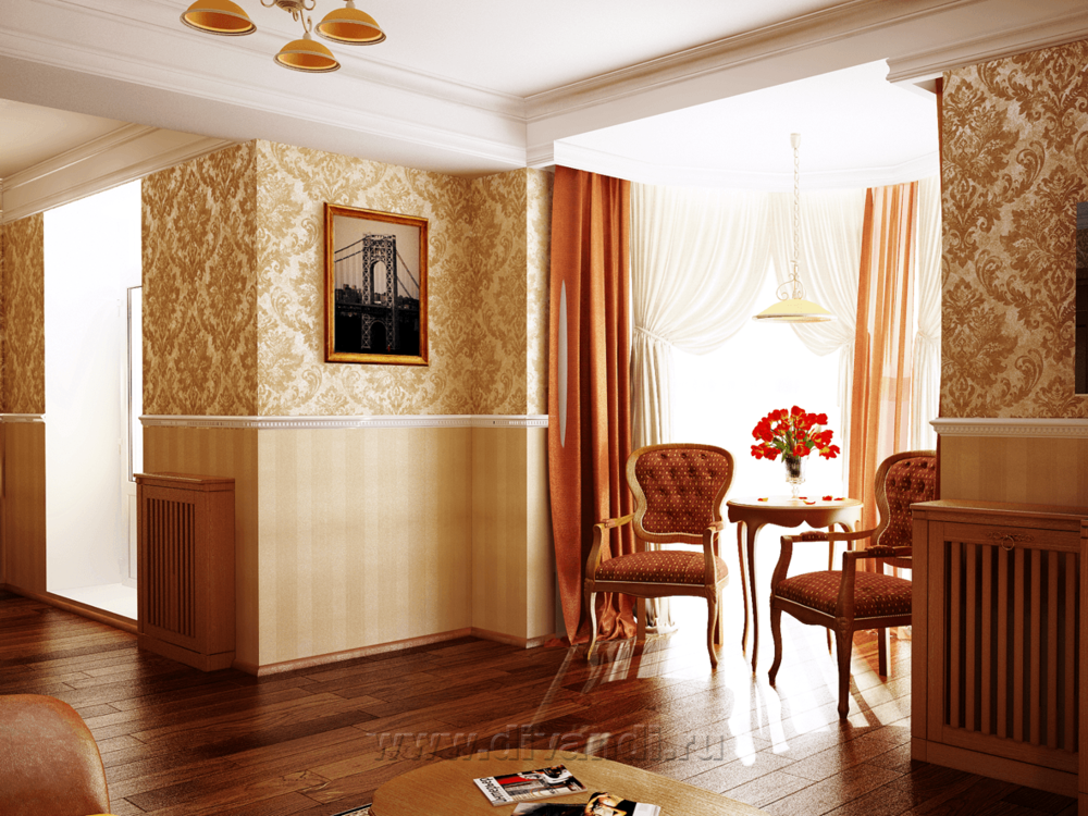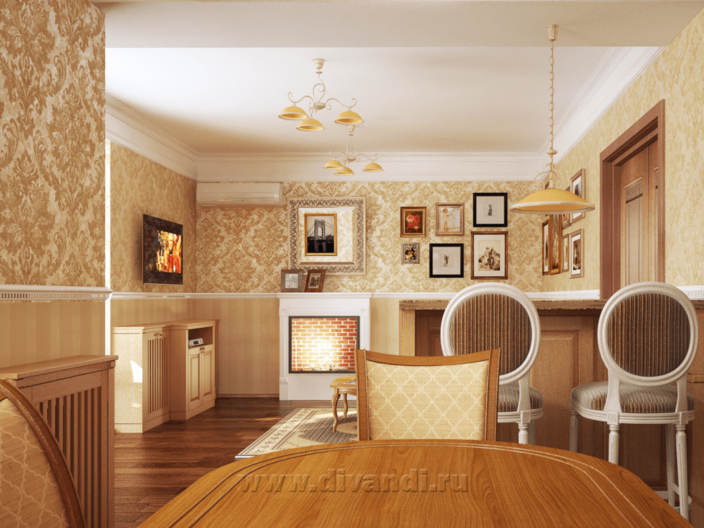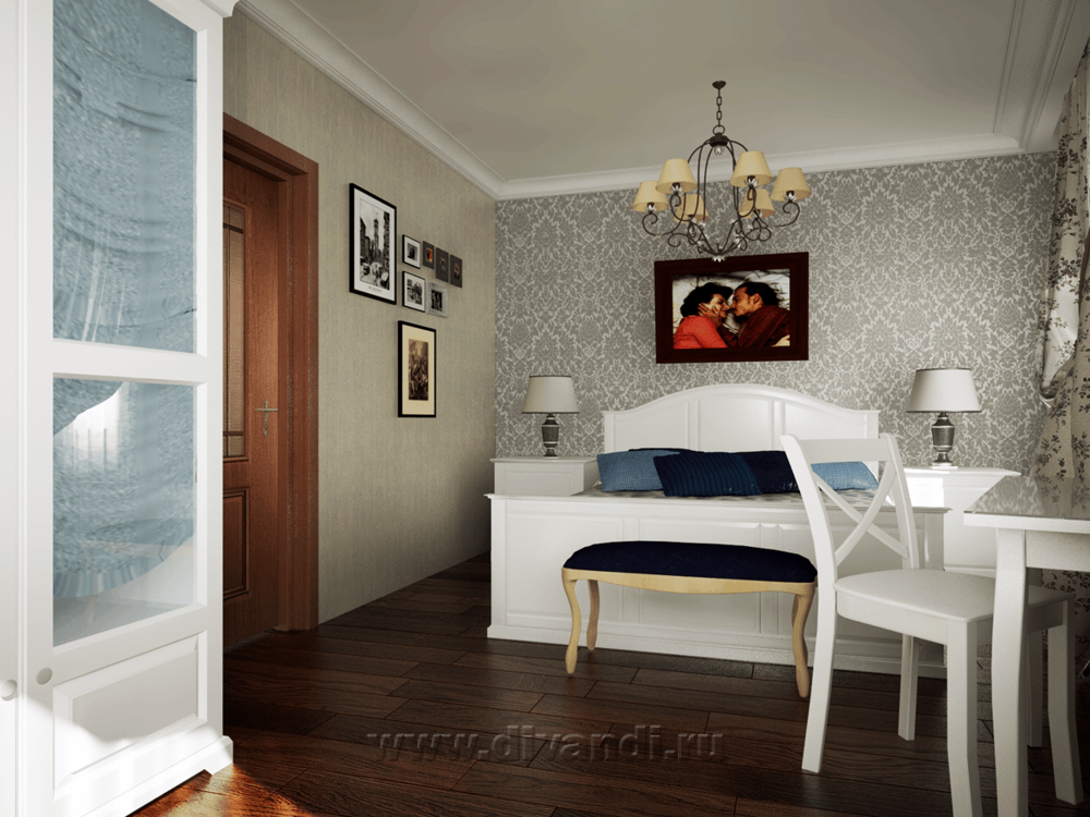 Каждая комната олицетворяет какой-либо стиль: зал-это английская классика, спальня-прованс, а комната для гостей выполнена в средиземноморском стиле.