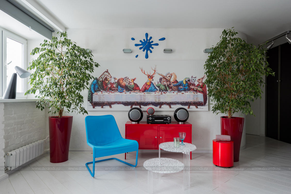 Идея родилась из того, что хозяева квартиры любят различные предметы искусства, прежде всего картины. Привозят их из разных стран. А так же очень любят превращать рисунки своих детей в искусство. Для этого специально их оформляют и вешают на почетное место, как особенную драгоценность. Если задуматься — это и есть главная драгоценность, с точки зрения памяти и эмоций, которые вызывают эти произведения искусств.