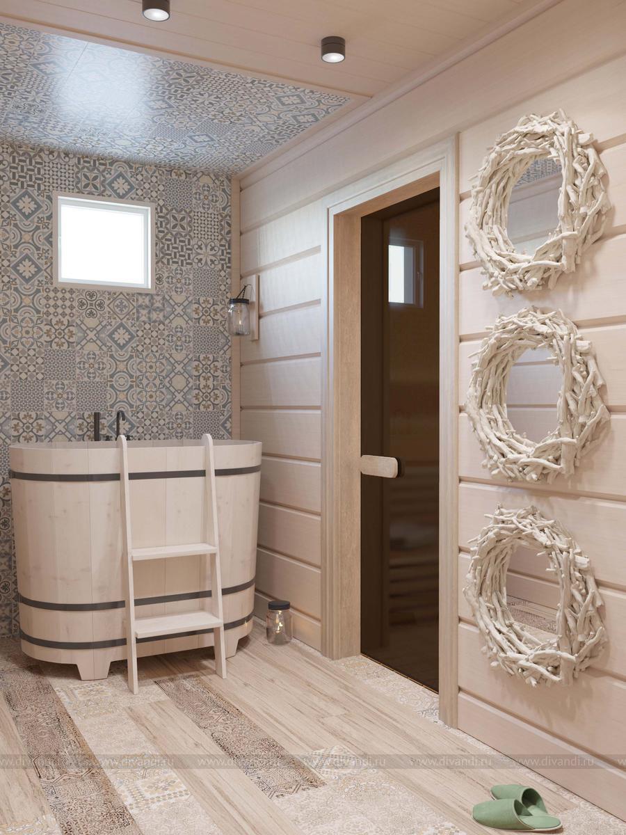 Интерьер бани в стиле шале