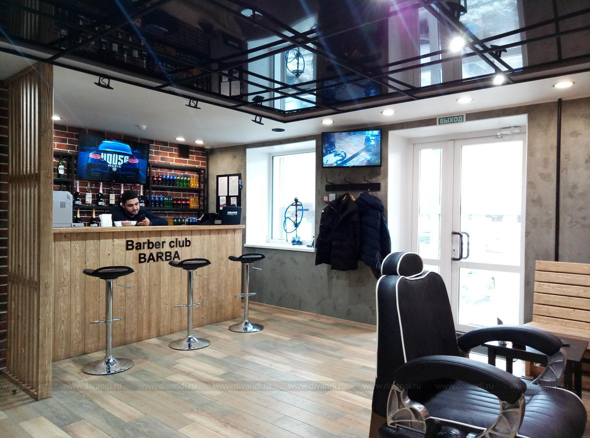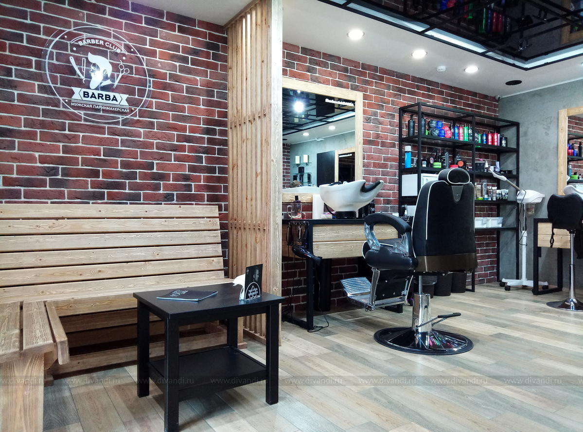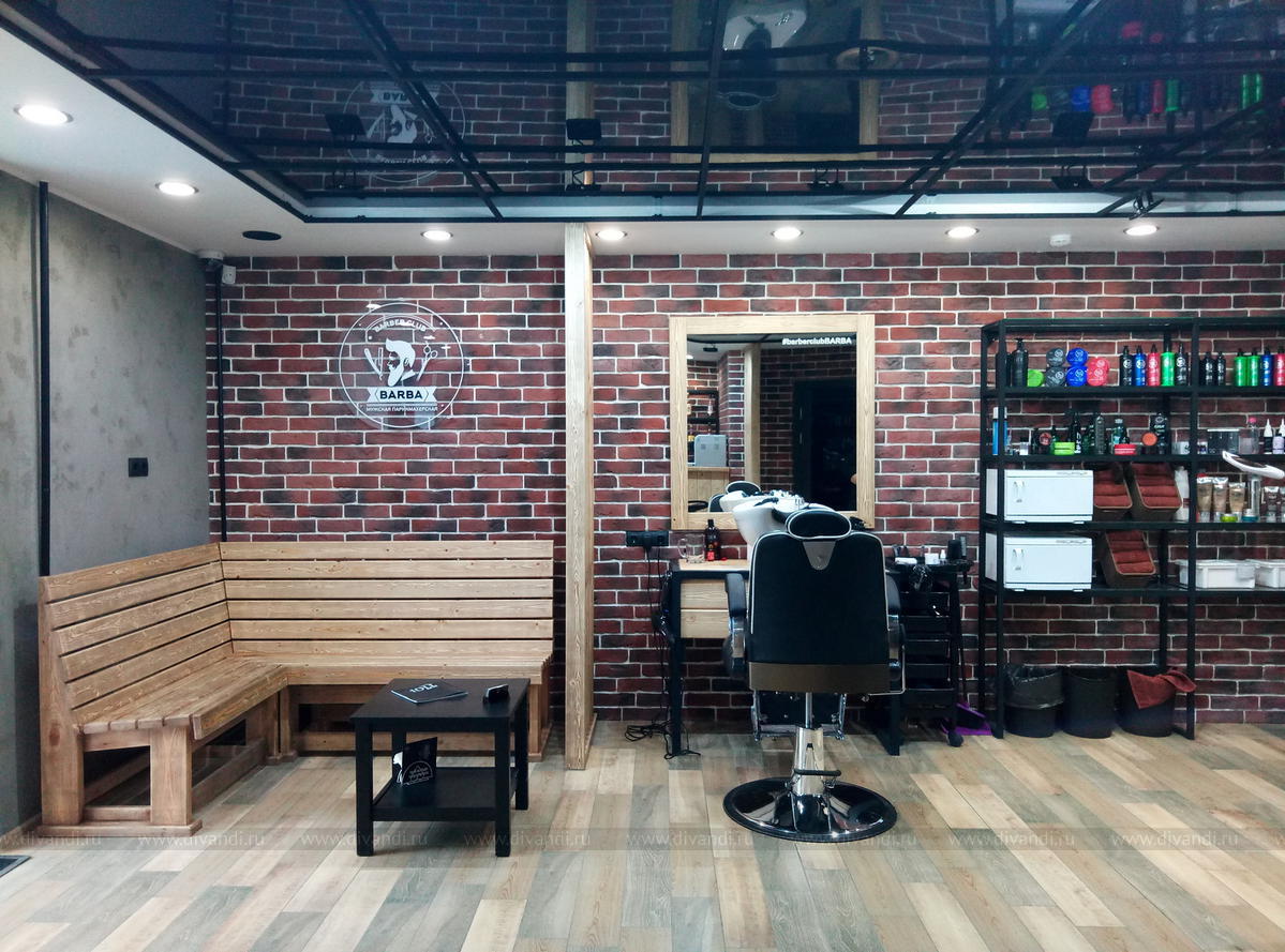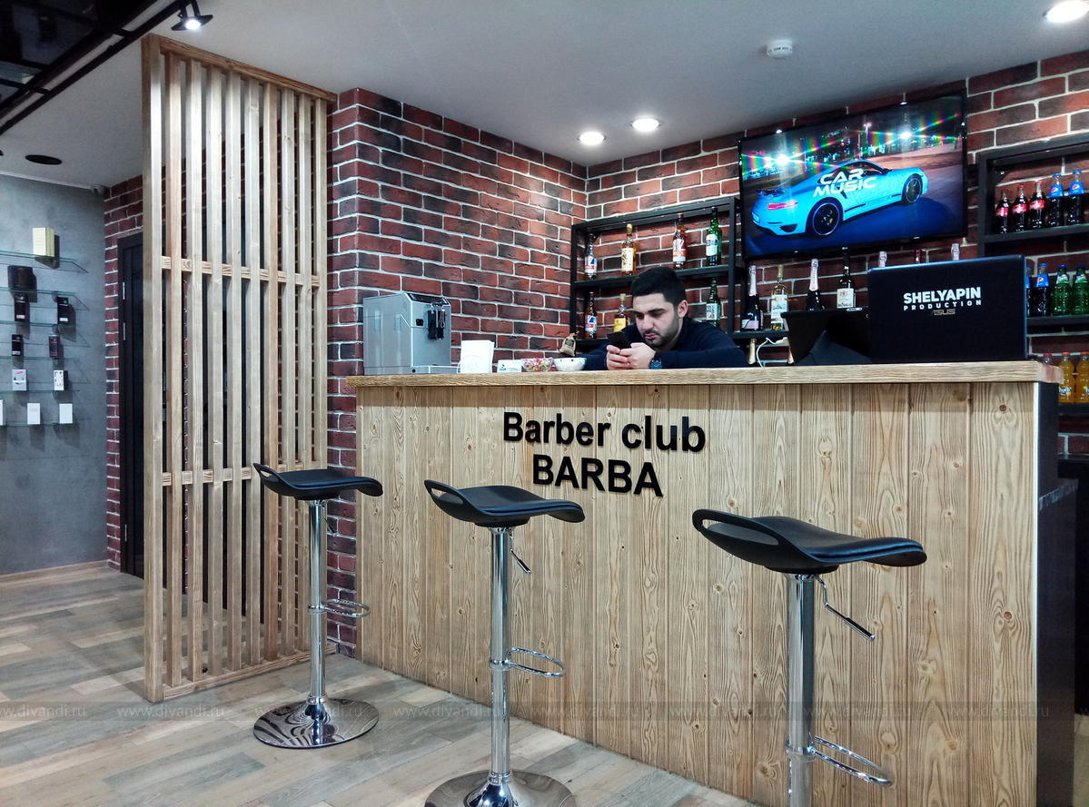 В этом проекте была задача разработать максимально брутальный, но не тяжелый интерьер в стиле лофт. Барбершоп получился очень атмосферный и чисто мужской.