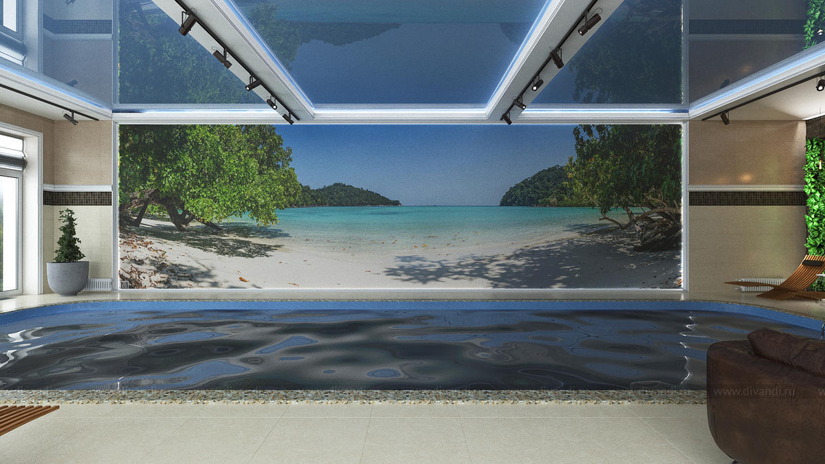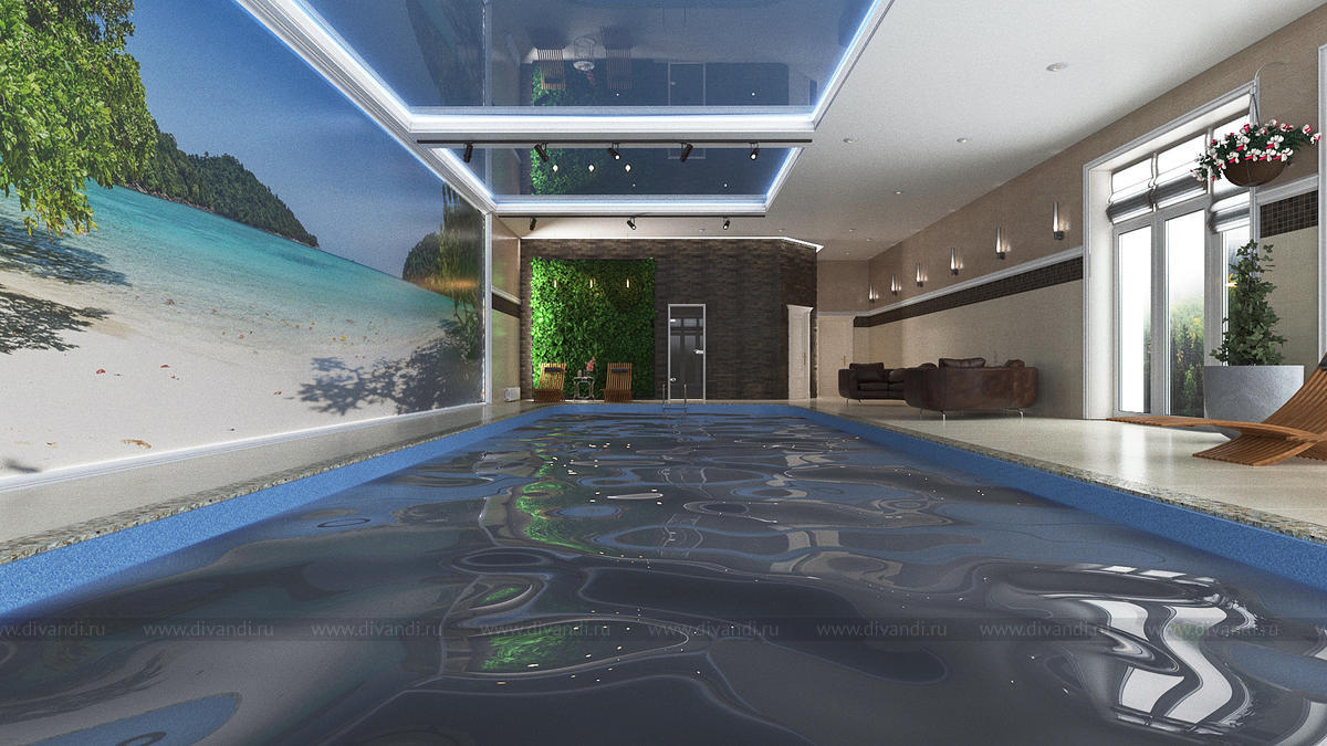 Дизайн помещения с бассейном в загородном коттедже