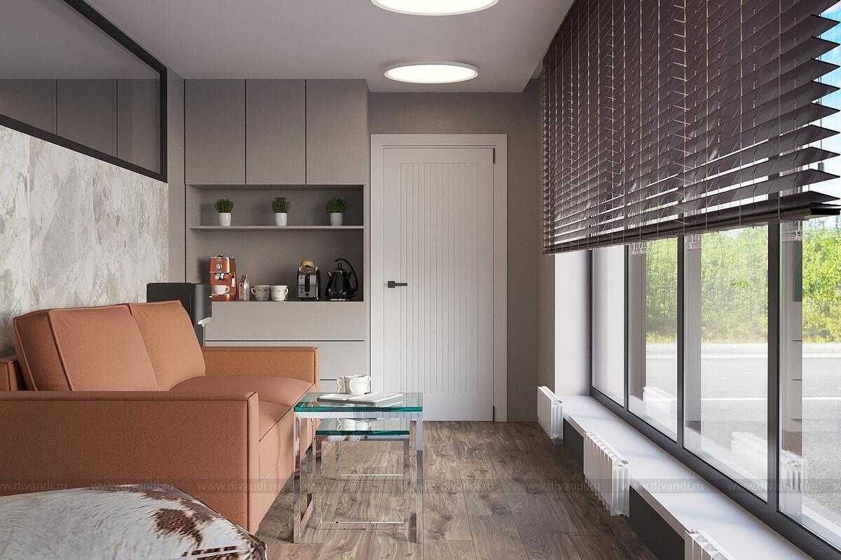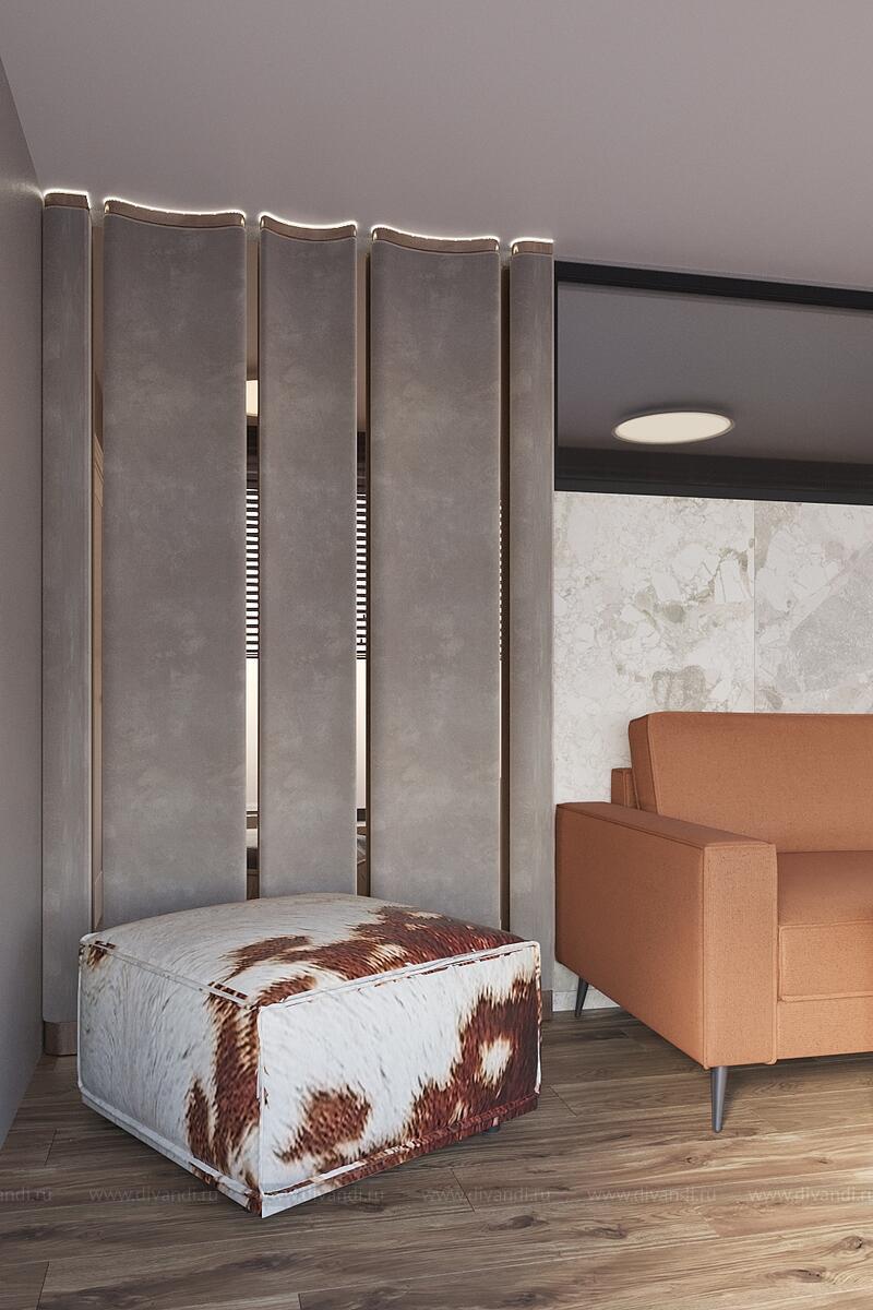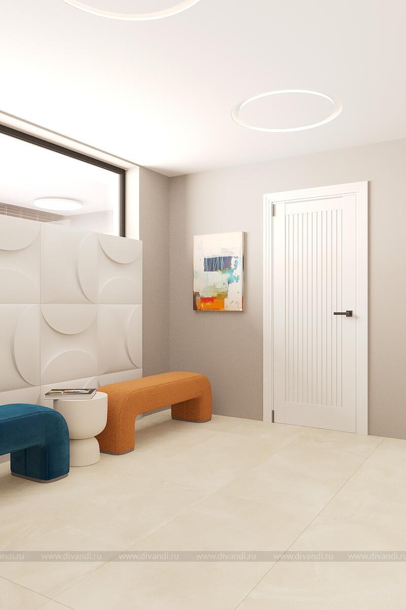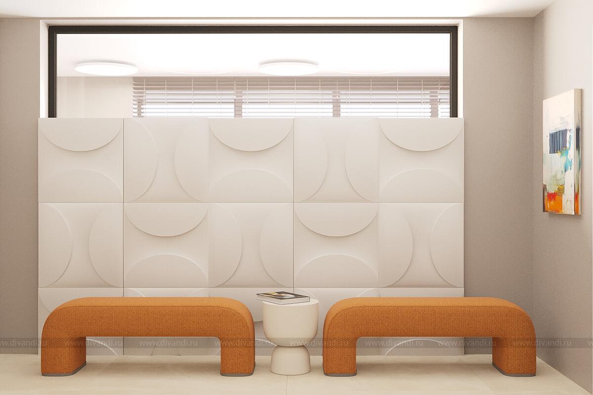 Современный интерьер зоны ожидания или небольшого холла в минималистичном стиле.