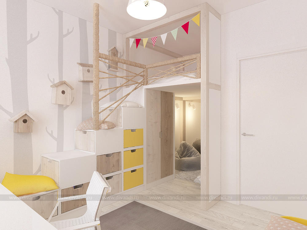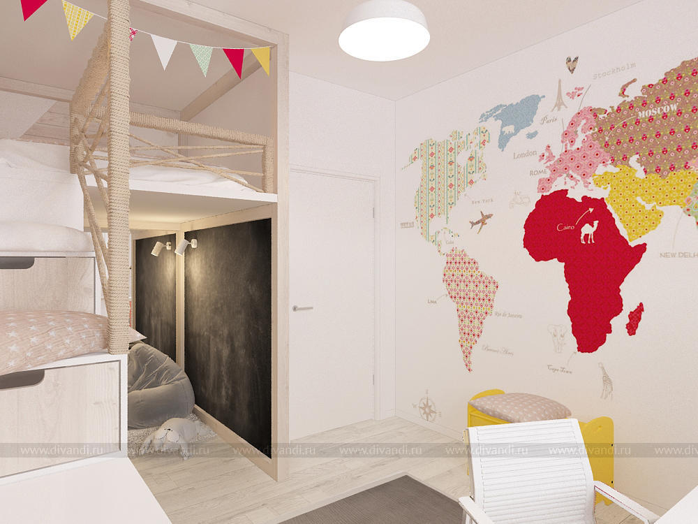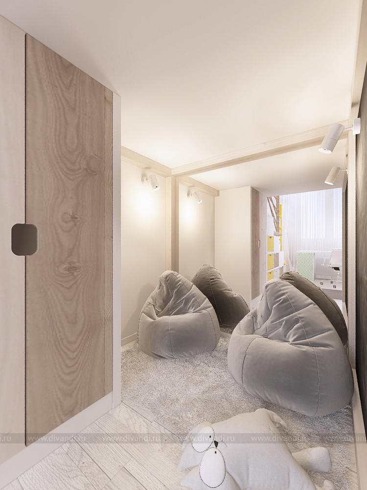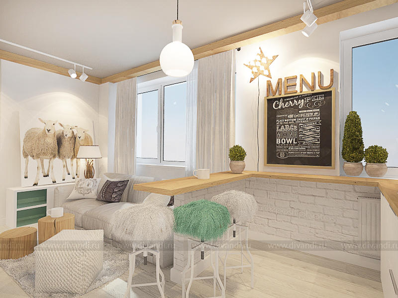 Трехкомнатная квартира (69, 5 кв.м.) в Екатеринбурге (ЖК Крыловъ) для творческой семьи из трех человек. Для дизайнера важно было предусмотреть как личное пространство для каждого, так и место, где вся семья сможет проводить время вместе. Так в квартире появилась просторная и "мягкая" кухня- гостиная с кудрявыми табуретами и овечками на стене, а также уютная и романтичная спальня и оригинальная детская. Интерьер получился легким и свежим, в нем много интересных деталей и оригинальных идей.