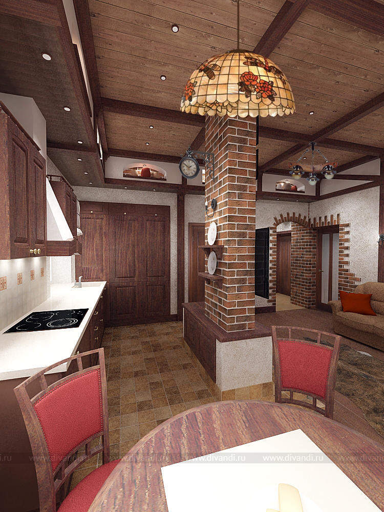 Тип проекта: загородный дом, кухня, гостиная