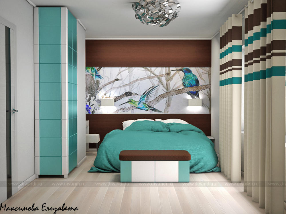 Яркость, простота и уникальность дает этой комнате поистине привлекательный вид. Глубокий бирюзовый цвет охлаждает и создает ощущение чистоты воздуха. Благодаря этому в бирюзовой спальне приятно засыпать. В ней легче отрешиться от проблем, избавиться от негативных эмоций, ощутить психологическое равновесие.