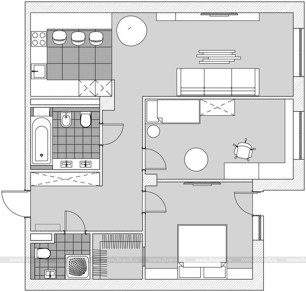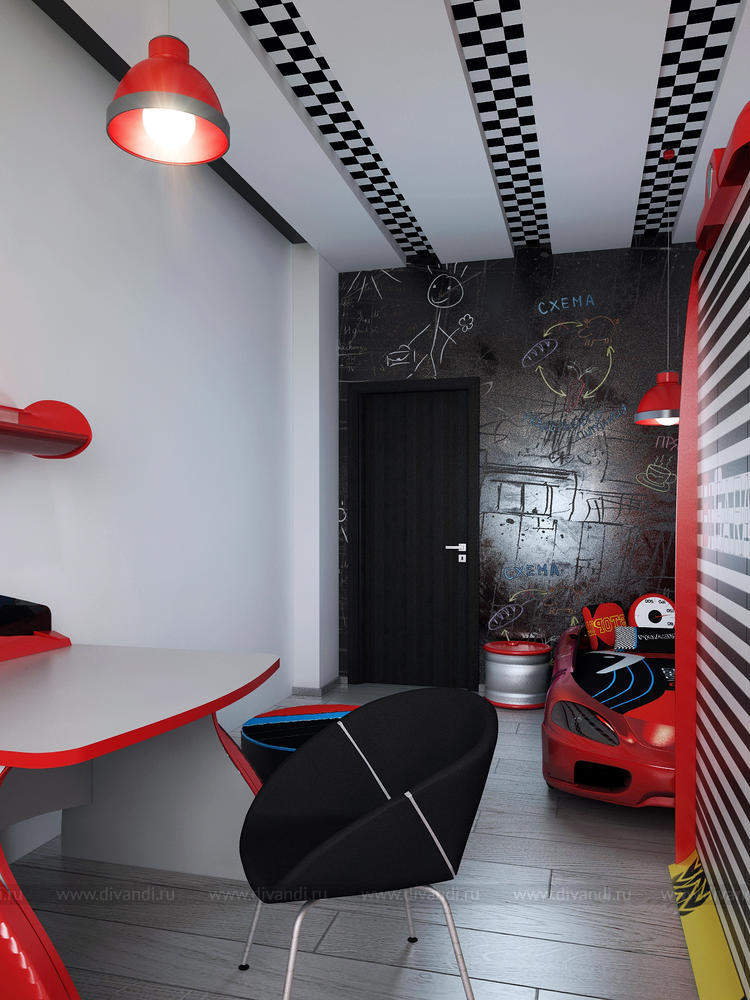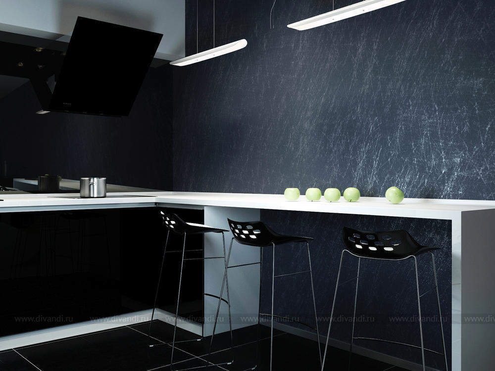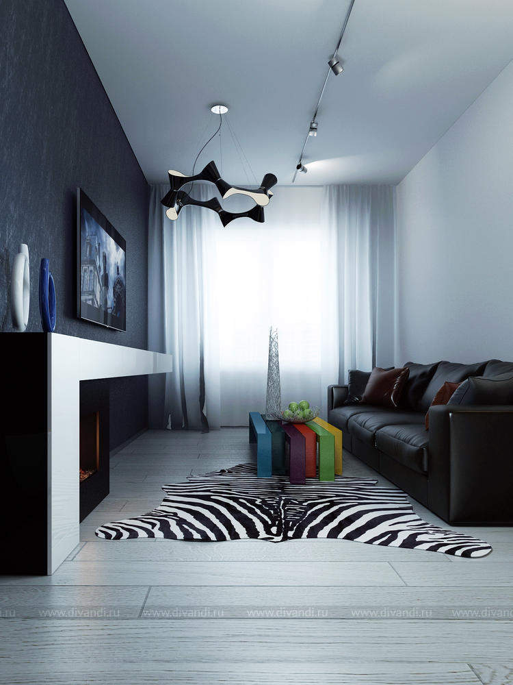 Квартира находится на последнем этаже высотки, с потолками высотой три метра. Концепция интерьера строится на контрастном сочетании черного и белого: уровни потолков, предметы мебели и аксессуары представляют черно-белое воплощение. Интерьер замиксован дизайнерскими предметами, такими как футуристичное кресло Placentero Lounge, светильниками плавной, перетекающей формы в противовес строгой прямоугольной конфигурации хай-тэка. Участвует в фестивале "Интерьер Возможностей-2014"