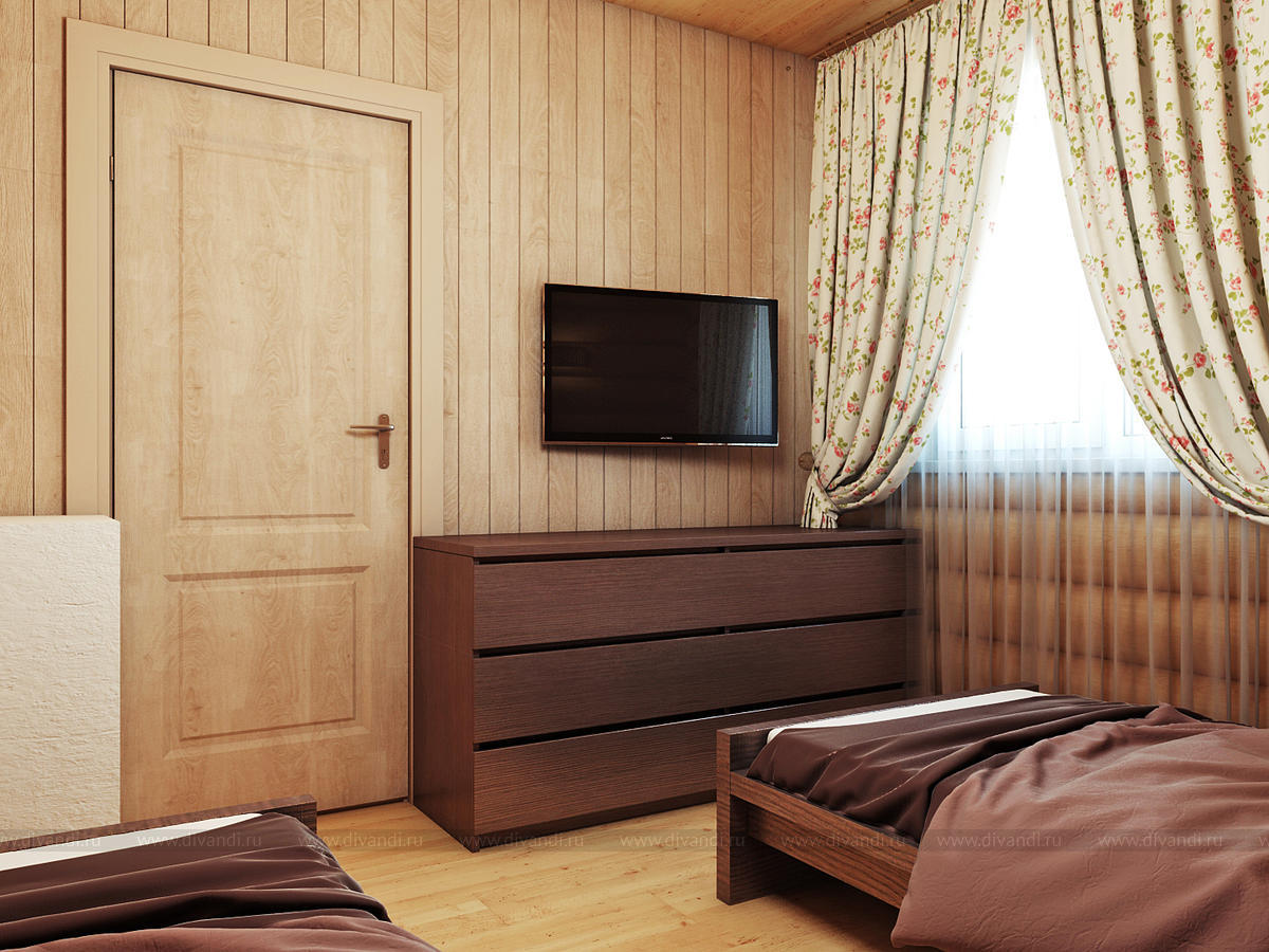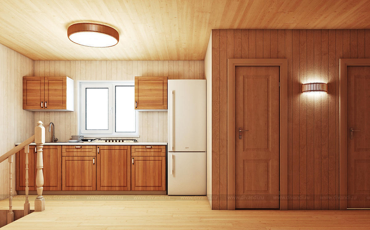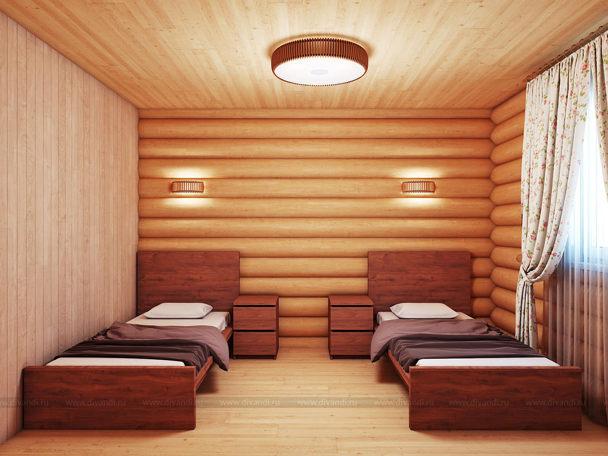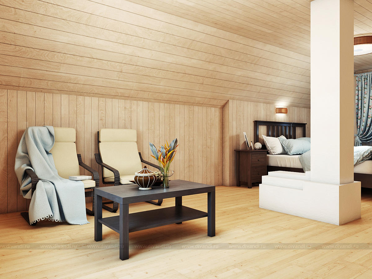 Заказчики себе сделали дом из бревна на острове в районе Волги. Дом рассчитан на кратковременное пребывание там, отдых. В мебели принципиальное пожелание было использовать ассортимент "икеа", в светильниках - аналоги итальянских фабрик.