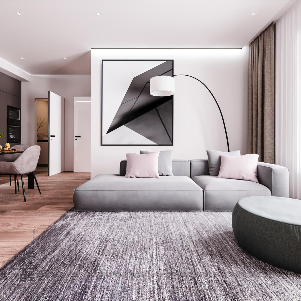 Трехкомнатная квартира в серых тонах. г. Екатеринбург ЖК "Форум Сити" Площадь 74 кв.м.