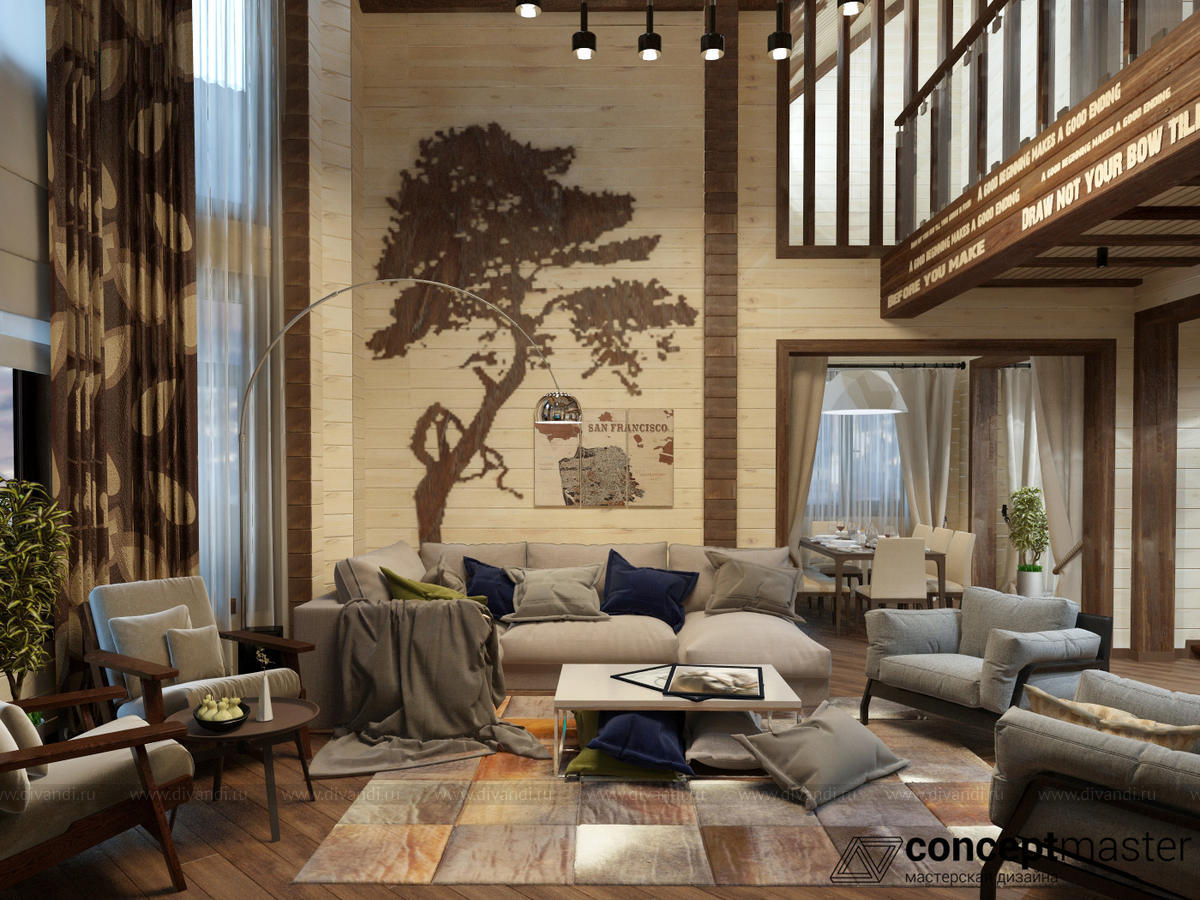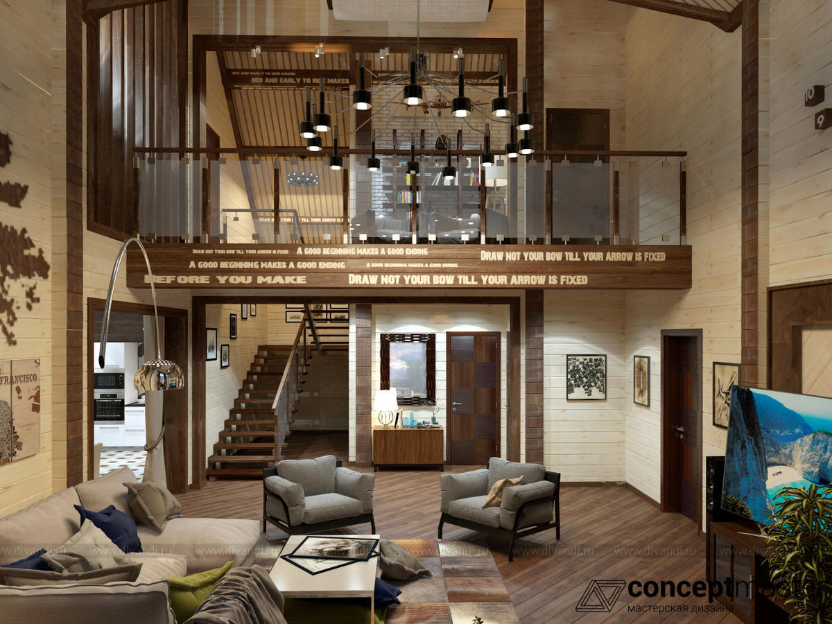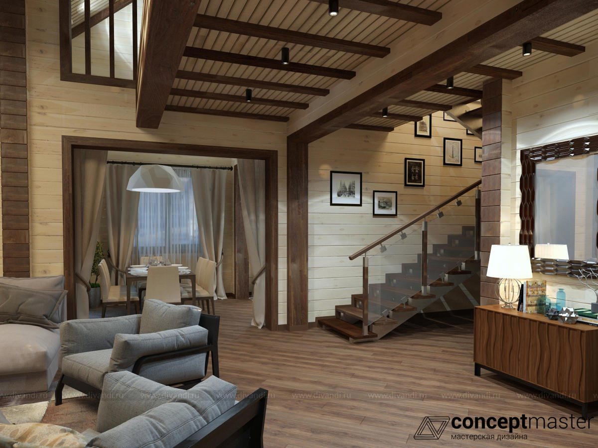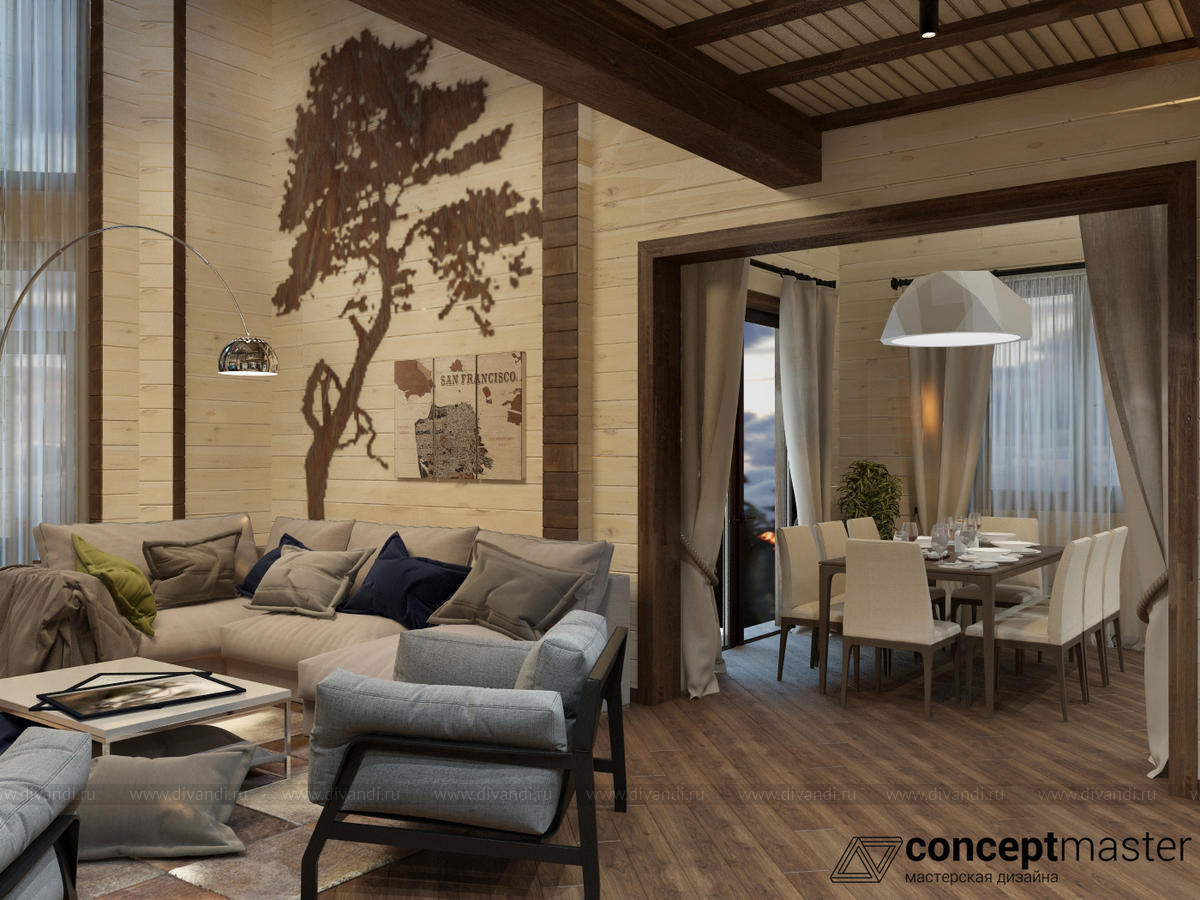 Внутренний интерьер деревянного дома, как и любого другого, начинается с оформления стен, но дерево является природным материалом и особо не нуждается в декорации, оно само по себе является украшением. В интерьере гармонично и естественно сочетаются различные элементы дизайна и создают цельный образ, единый и гармоничный.