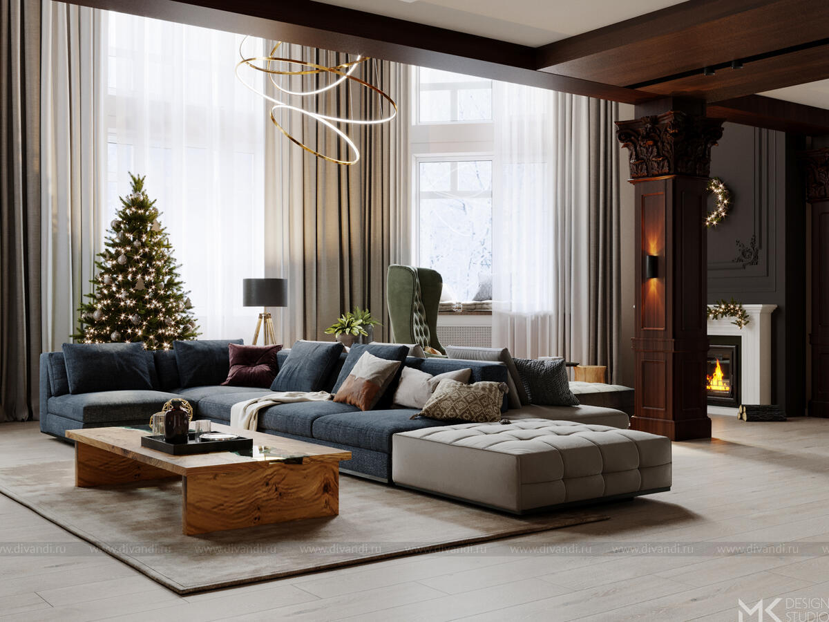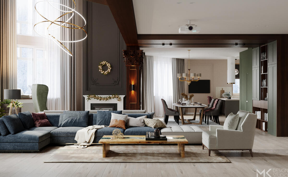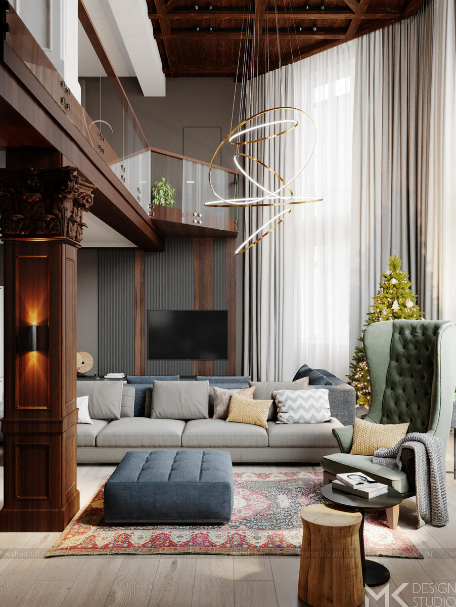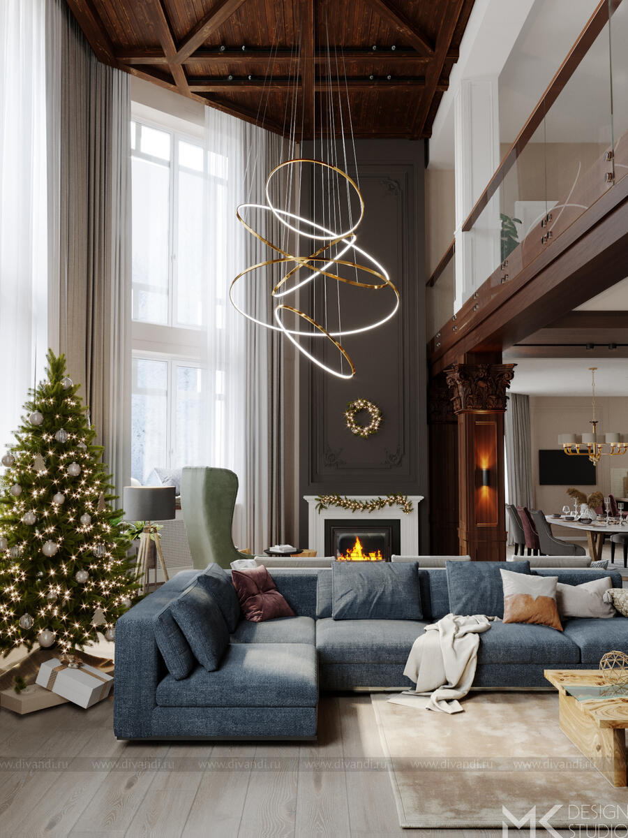 Проект загородного дома для постоянного проживания. Заказчики с разными взглядами на эстетику интерьера хотят жить под одной крышей большой дружной семьей.