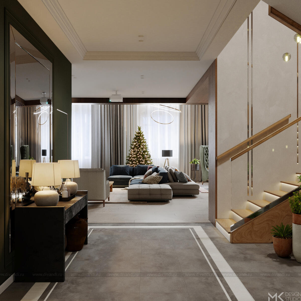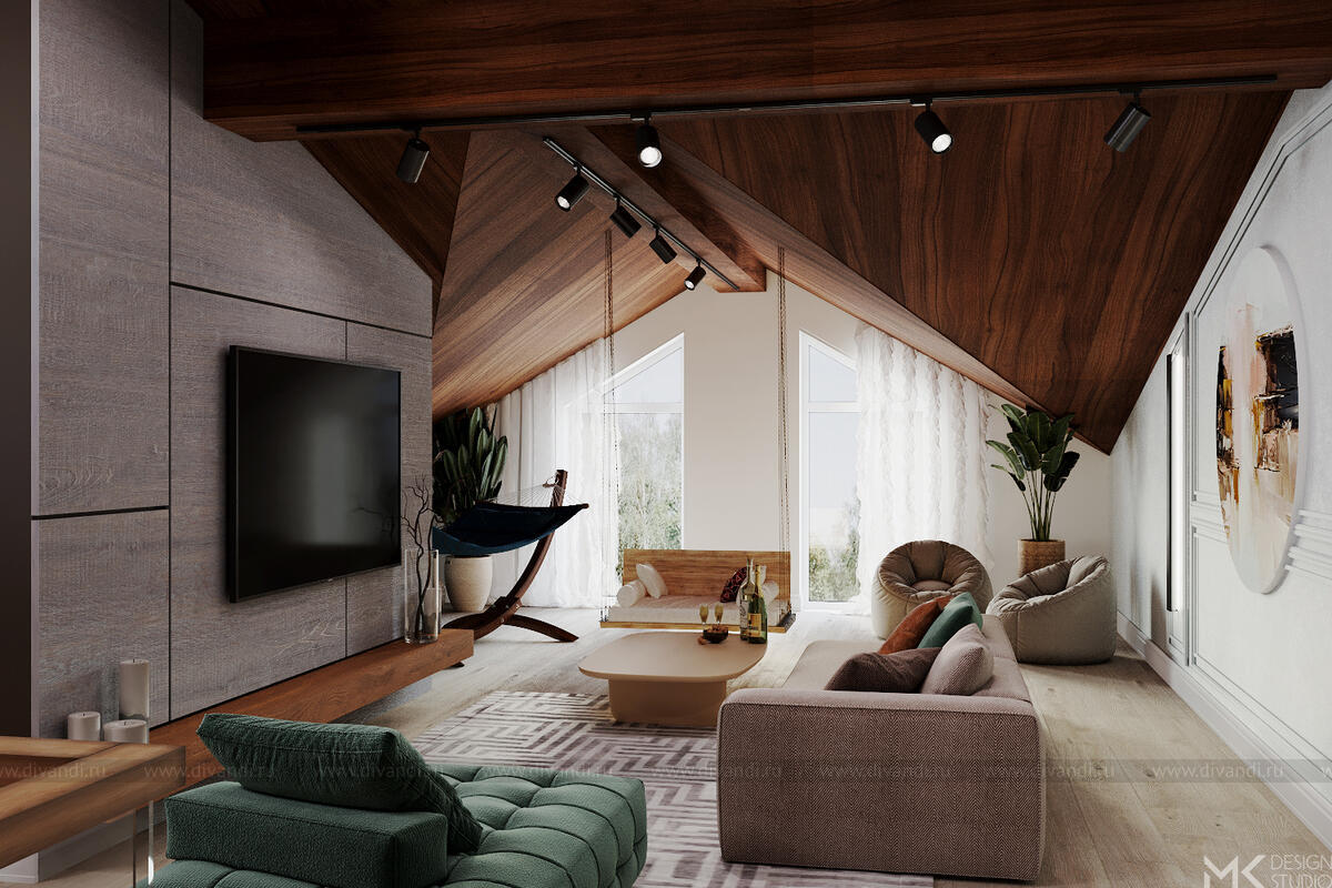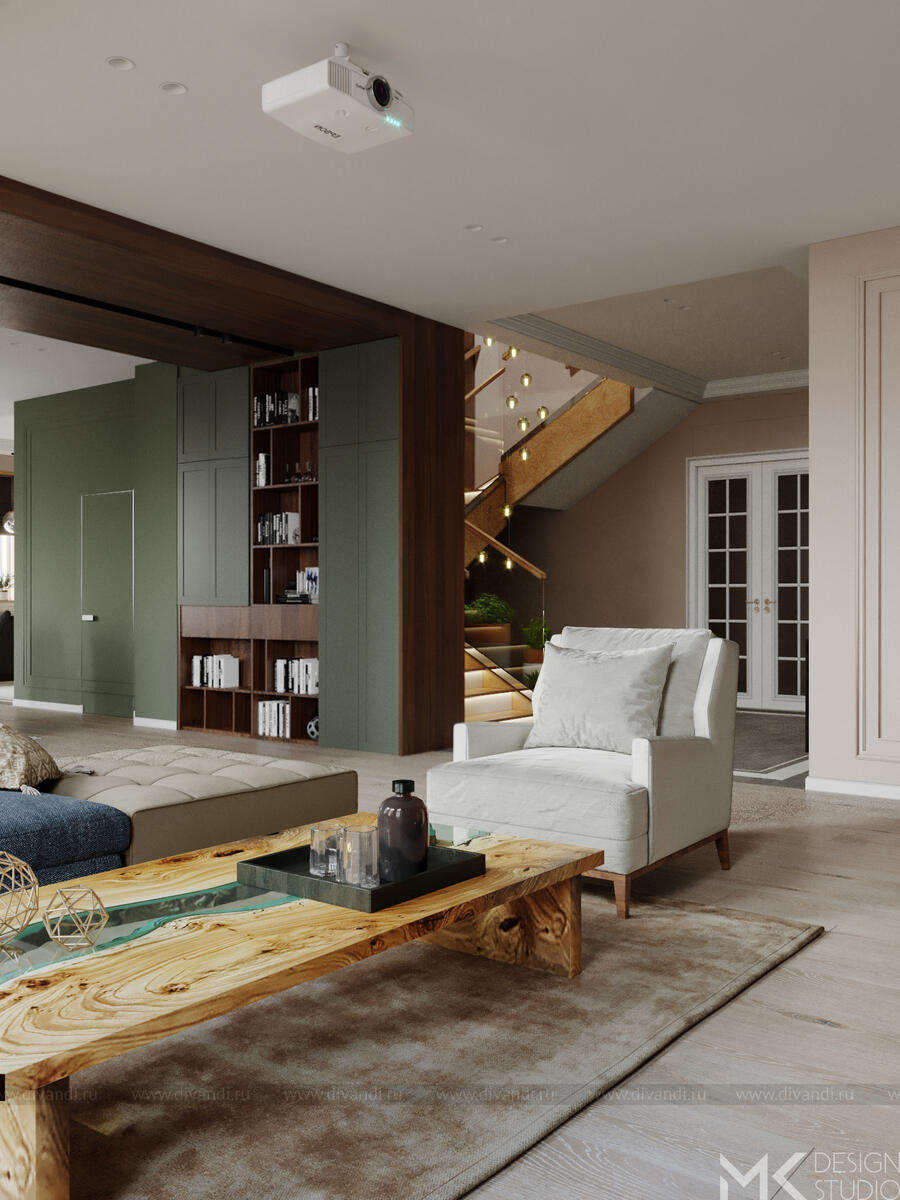 Проект загородного дома для постоянного проживания. Заказчики с разными взглядами на эстетику интерьера хотят жить под одной крышей большой дружной семьей.