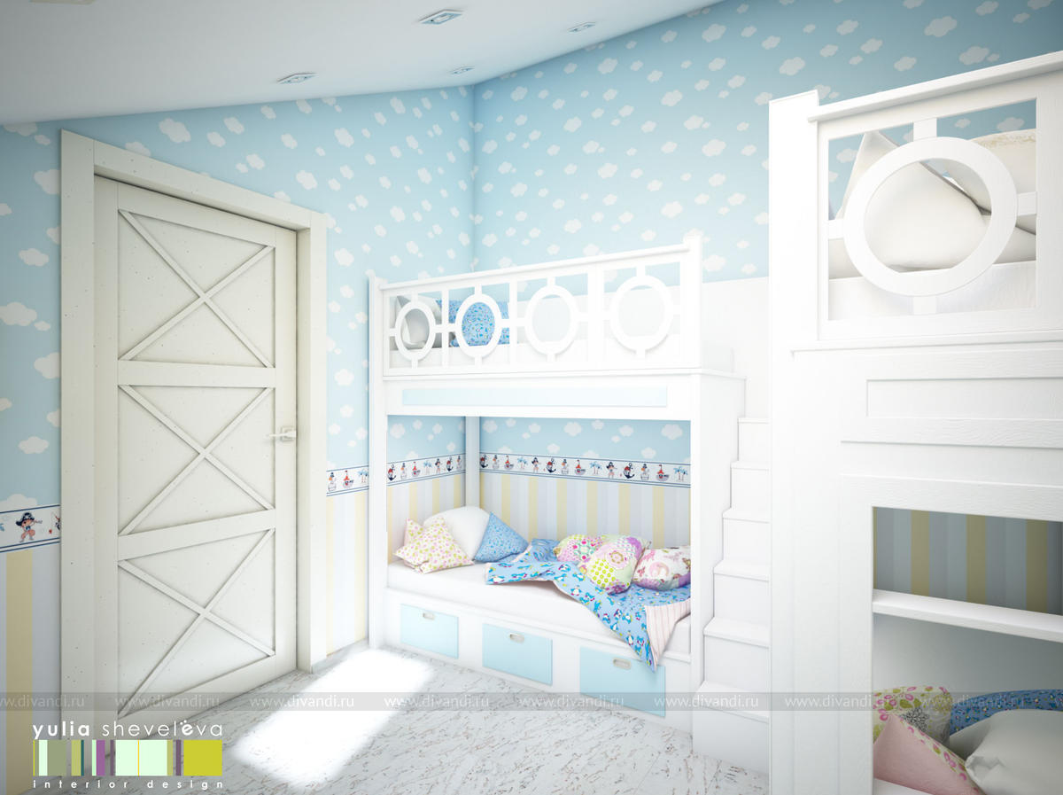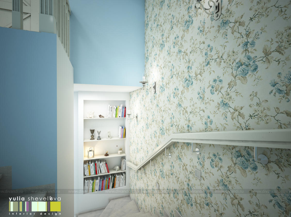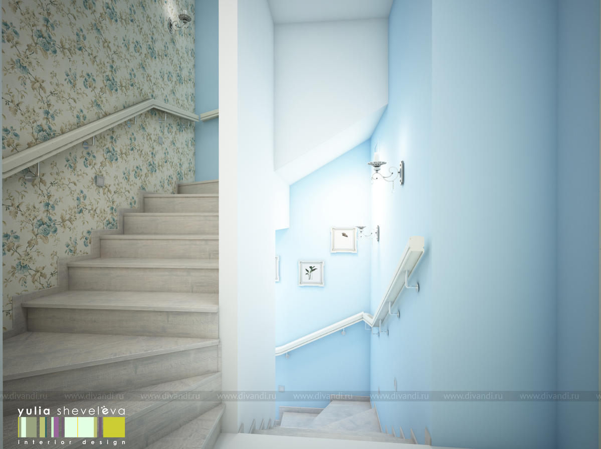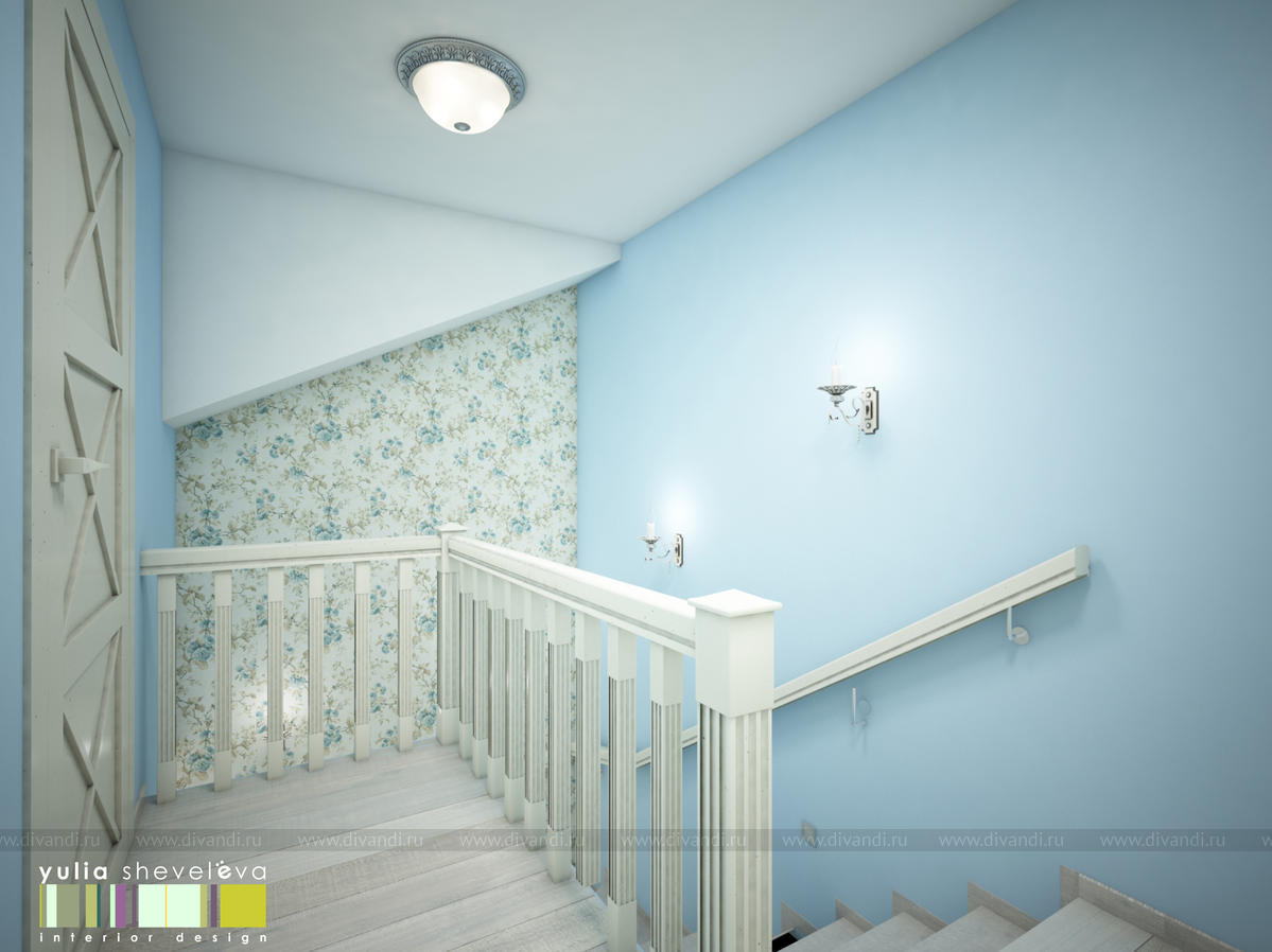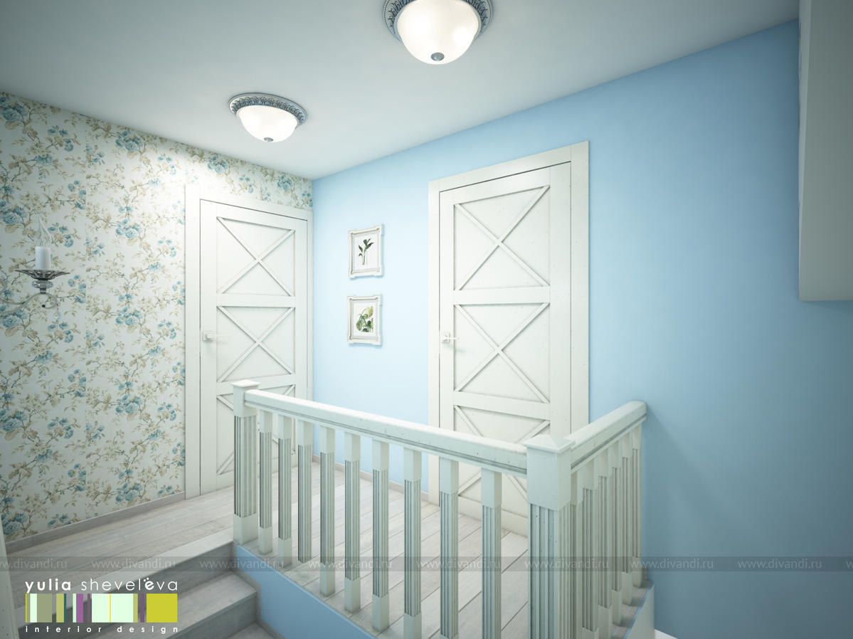 Проект небольшого таунхауса было решено проектировать в стиле прованс. На трех этажах пространства расположились кухня гостиная, спальня и кабинет и две детские зоны.