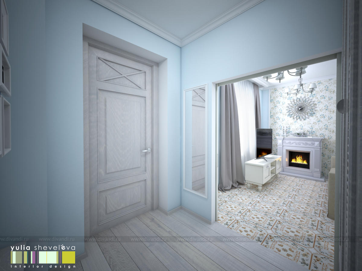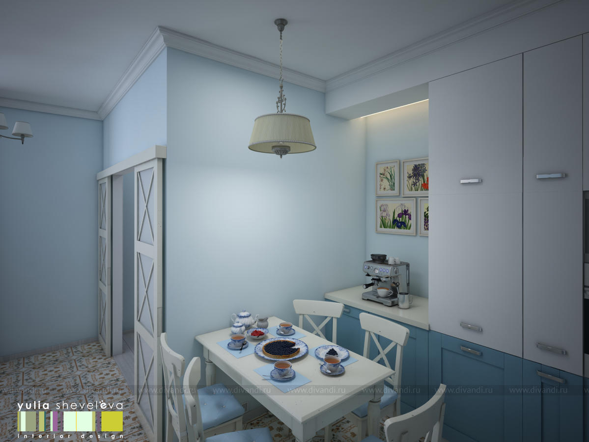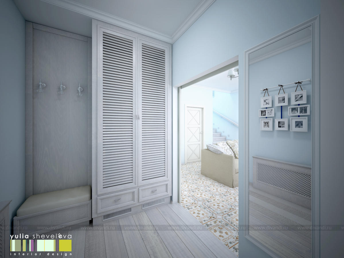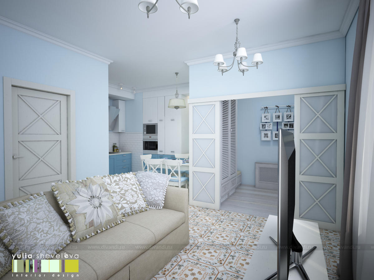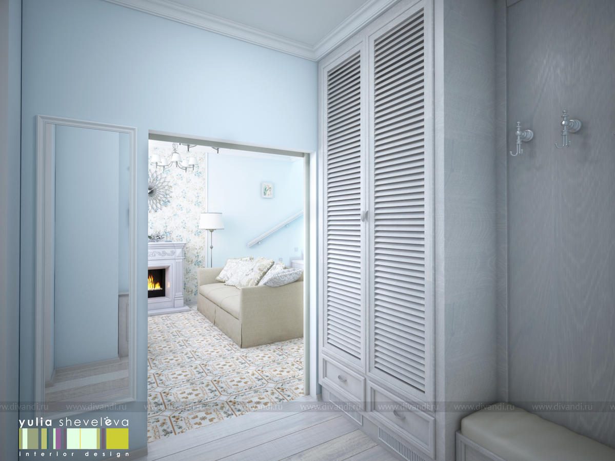 Проект небольшого таунхауса было решено проектировать в стиле прованс. На трех этажах пространства расположились кухня гостиная, спальня и кабинет и две детские зоны.