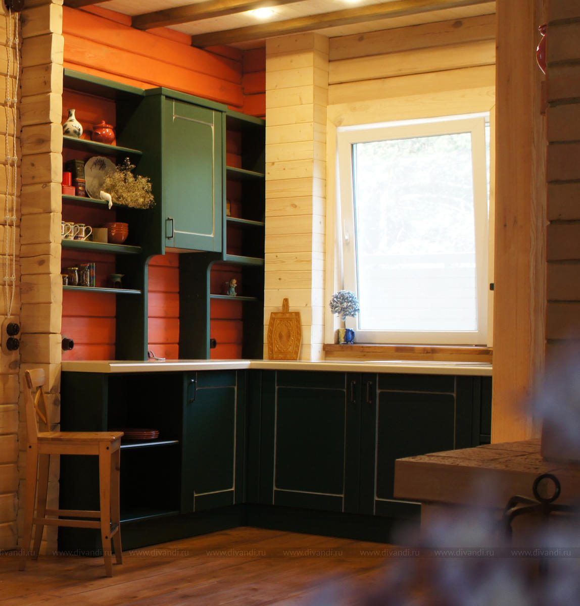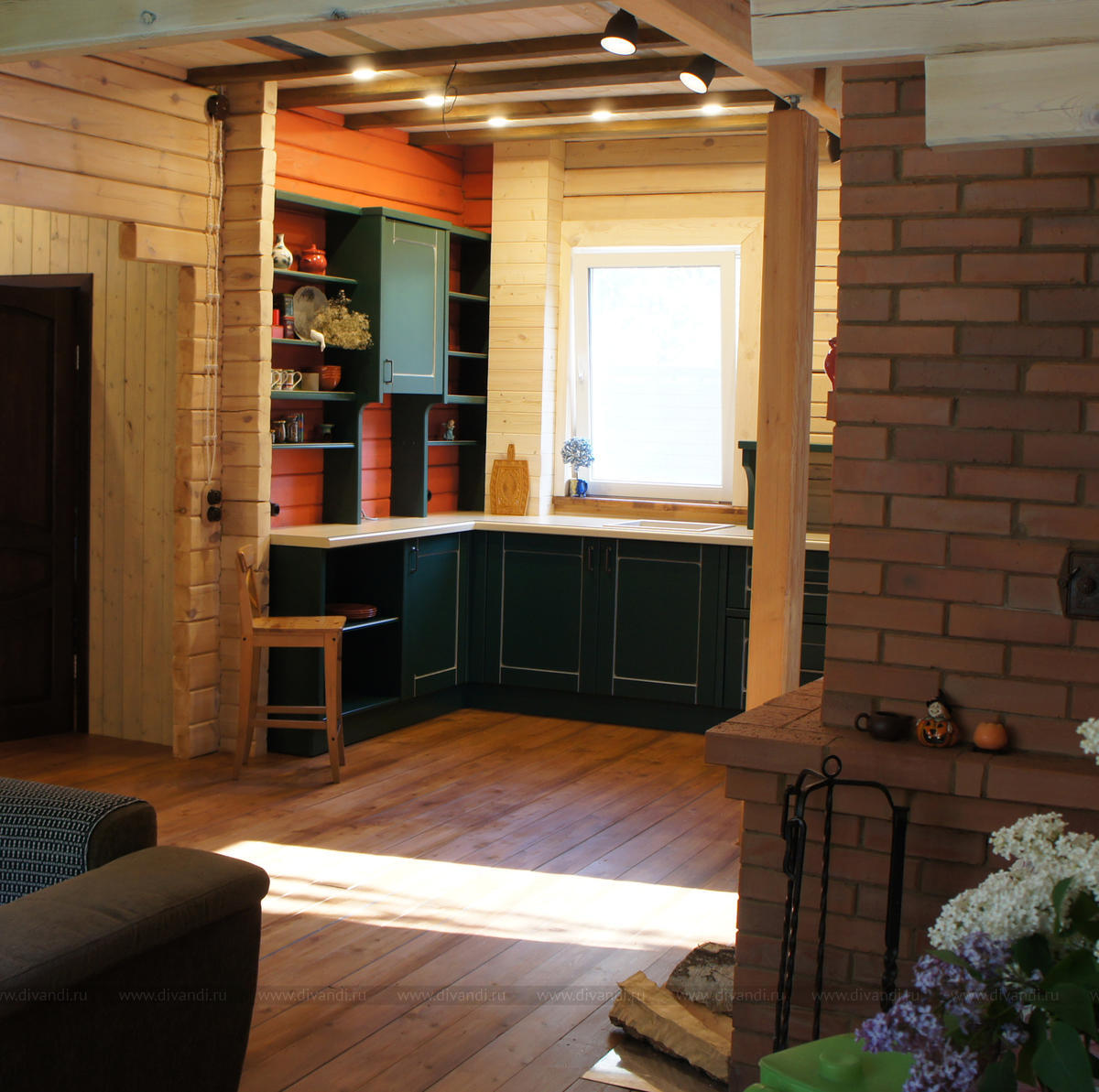 Дом из деревянного бруса, кухня-гостиная 55 кв.м.