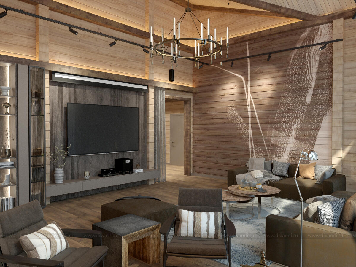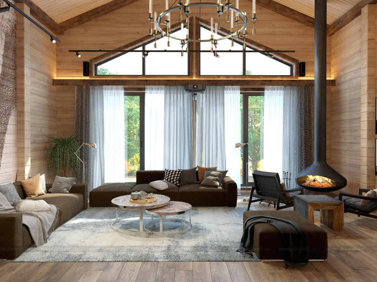 Тип проекта: загородный дом, кухня, гостиная