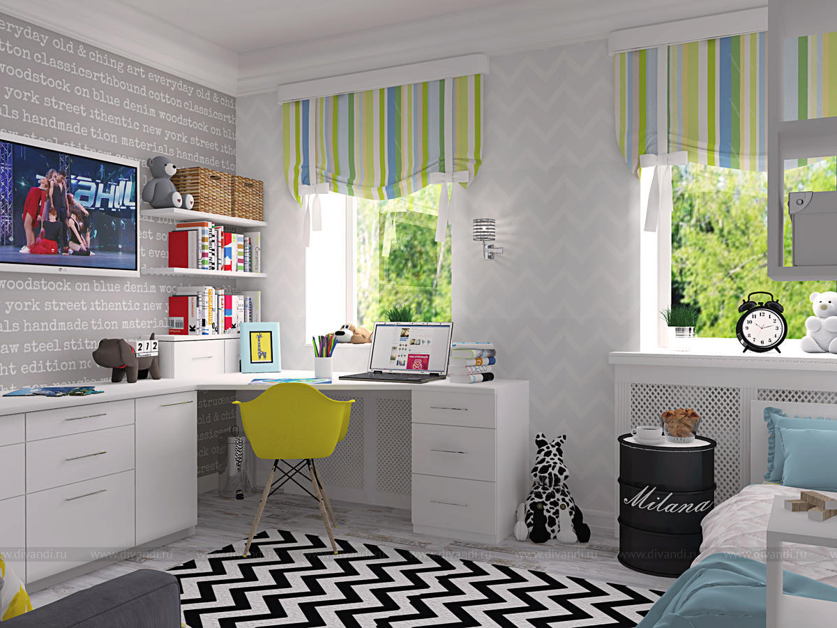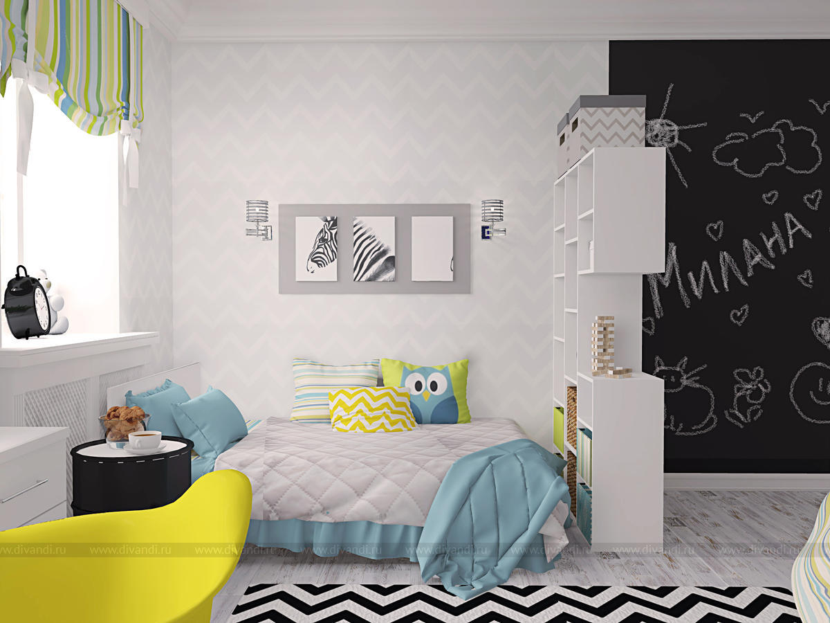 Когда я спросила будущую хозяйку этой комнаты про любимый цвет- она,не думая,ответила "Чееерный",а потом добавила "Я ненавижу розовый"(но интерьер хочет яркий). На цветовых предпочтениях наши вкусы полностью совпали-и вот,что получилось в результате