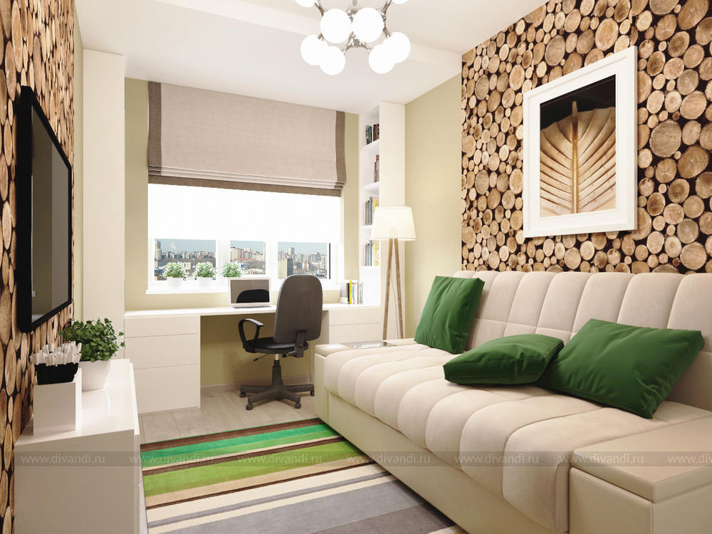 Дизайн-проект детской для мальчика выполнен в современном стиле с элементами эко-стиля.