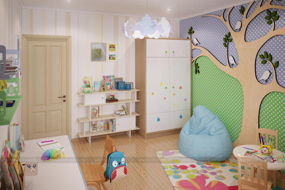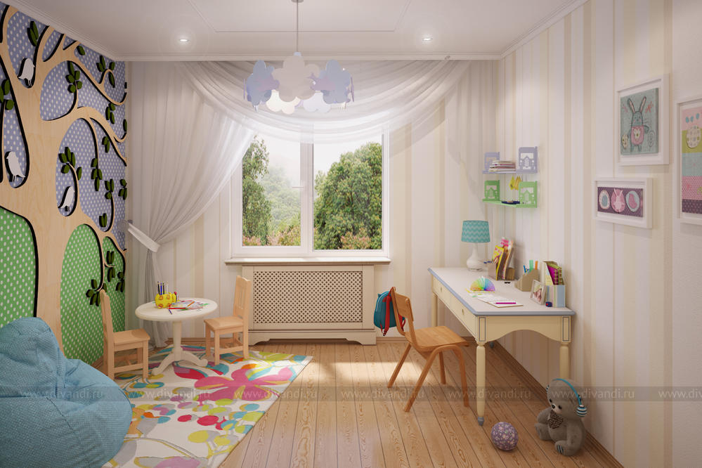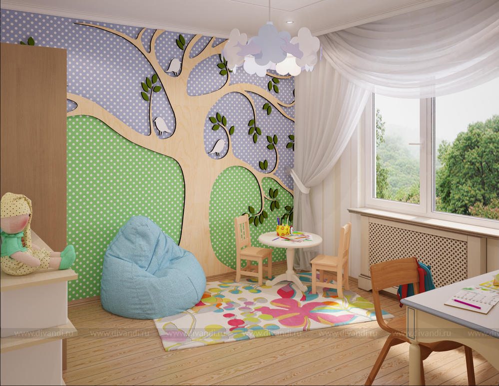 Светлые и веселые тона детской и игровой комнат создают хорошее, спокойное, позитивное настроение, а природные образы и мотивы пробуждают детскую фантазию.