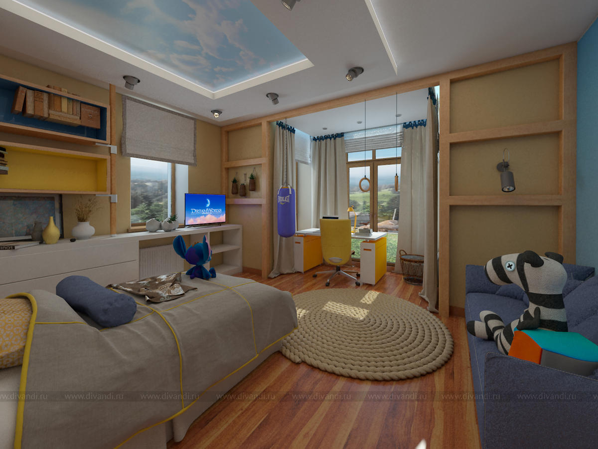 Интерьеры детской комнаты для мальчика в коттедже, Парк Заповедник