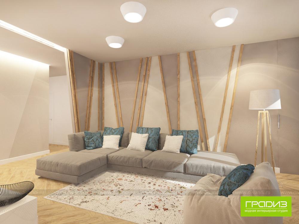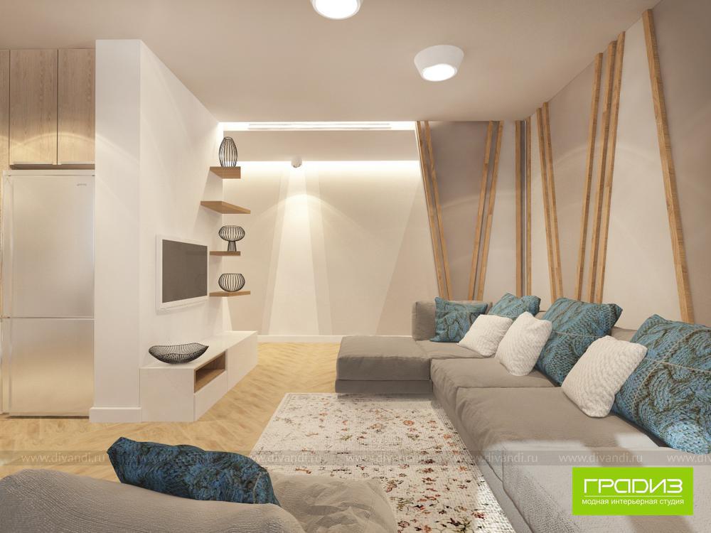 Cпокойный, свежий и стильный интерьер для молодой семьи с ребенком. В каждом помещении есть свой акцент, при этом пространство не перегружено деталями, как и хотели Заказчики. В интерьере много серого, но за счет использования дерева пространство выглядит теплым и домашним.