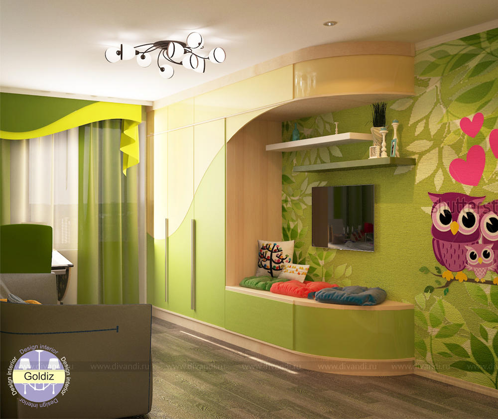 Дизайн интерьера комнаты для девочки "Фламинго"