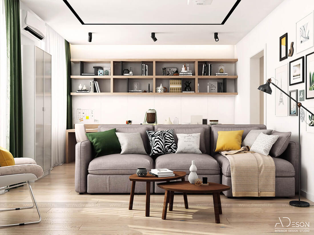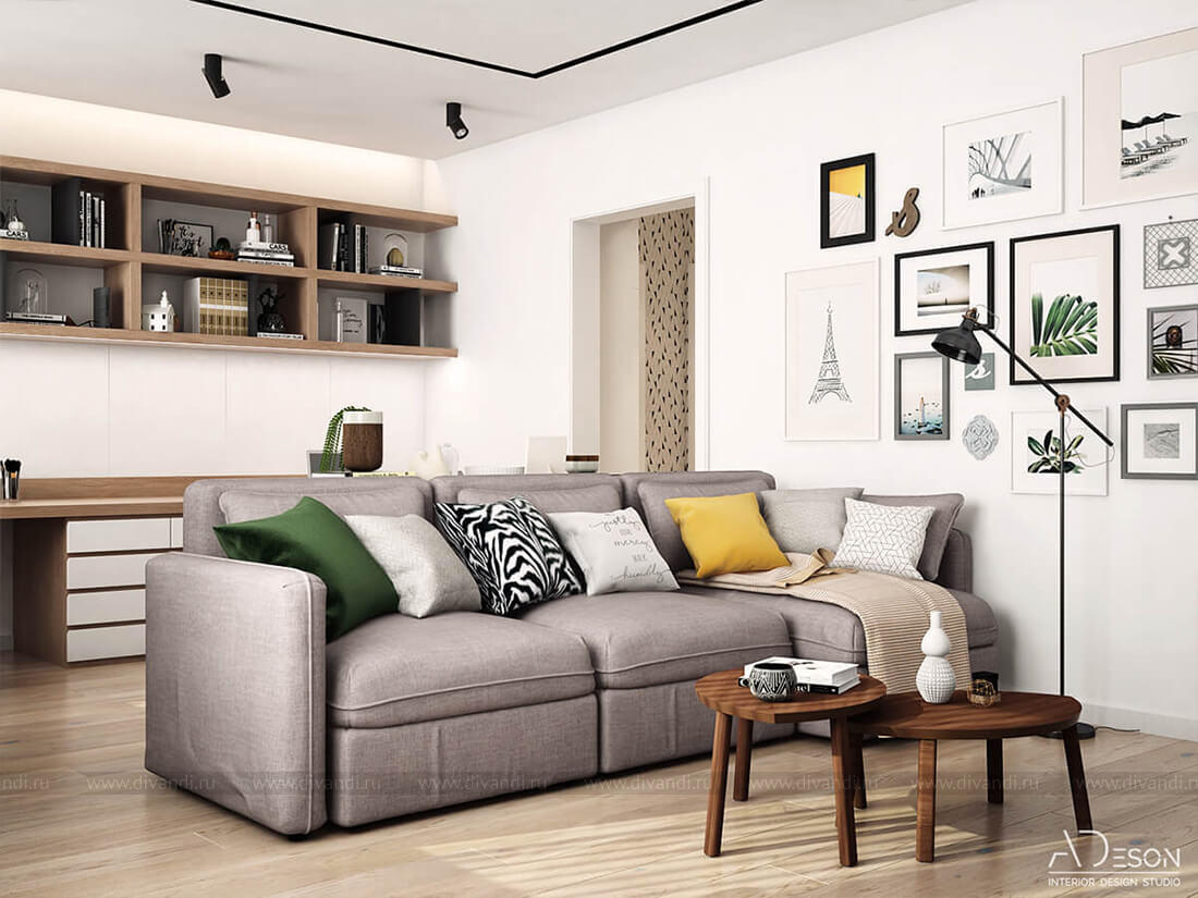 Гостиная с мини-кабинетом для молодой семьи в г. Верхняя Пышма