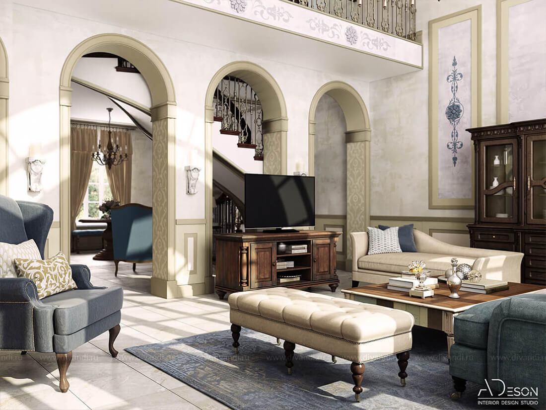 Проект загородного дома в г. Полевской для молодой пары. В данном проекте мы постарались создать атмосферу интерьеров итальянских палаццо.