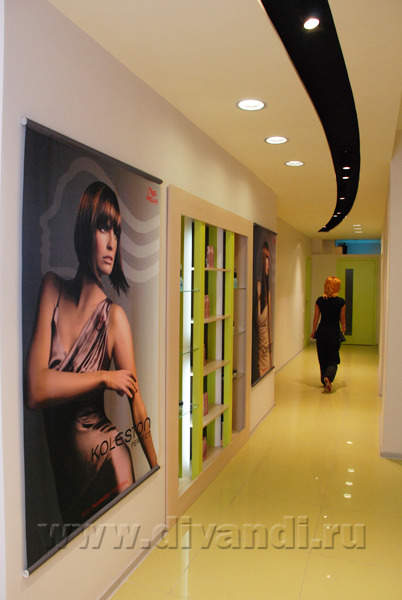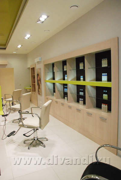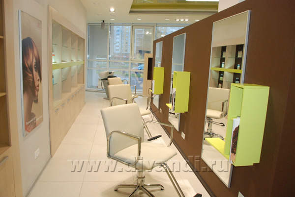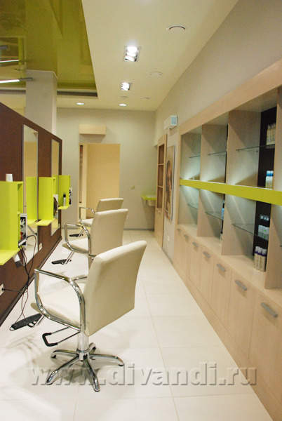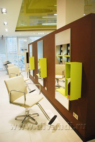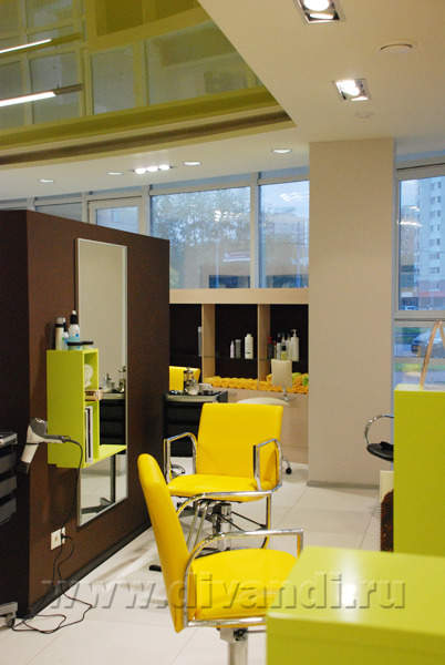 Сначала был продуман логотип и фирменные цвета: сочный салатовый и мягкий коричневый, которые легли в основу цвета интерьера. Здесь тщательно спроектированы встроенные витрины и подсветка.