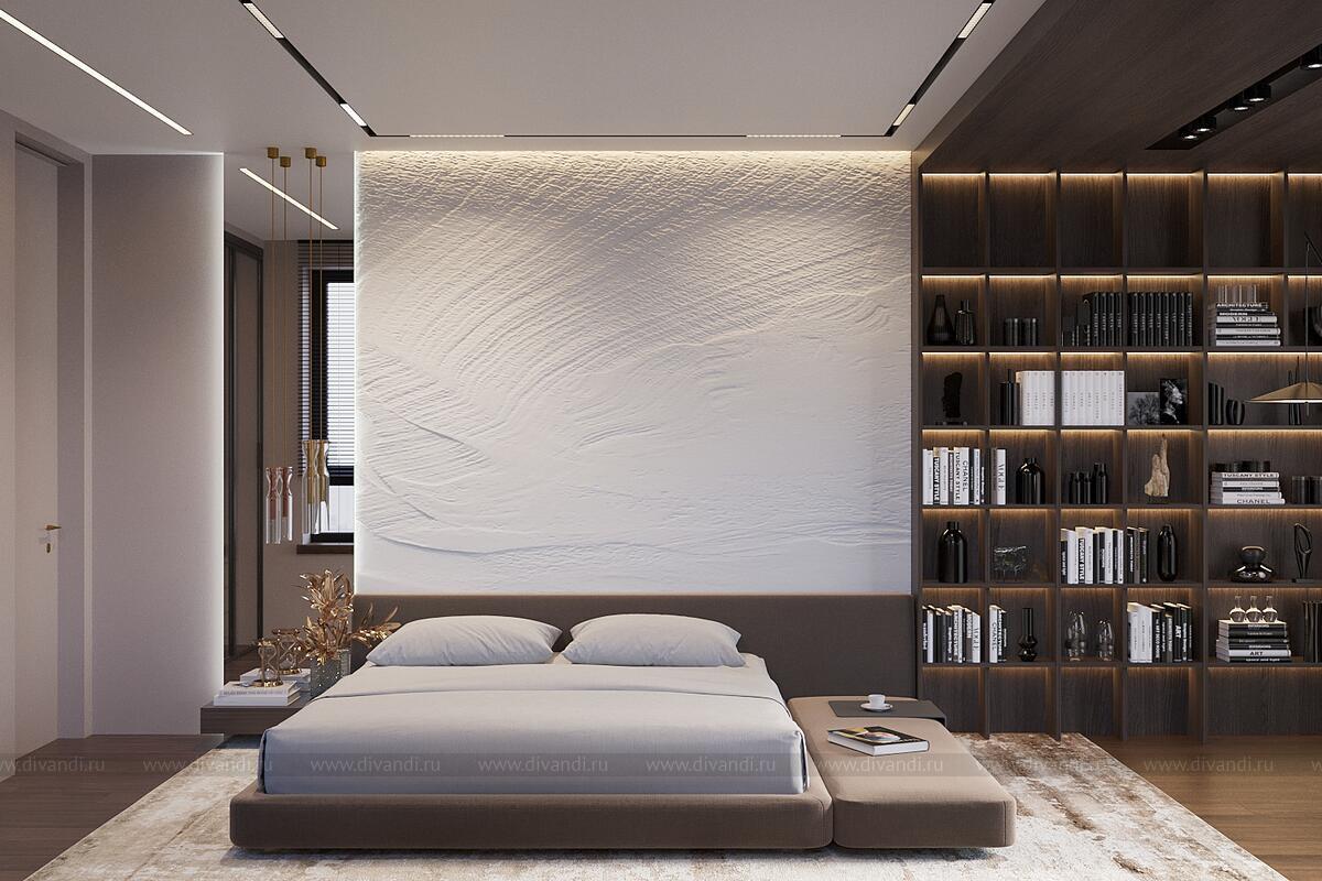 Спальня, оформленная в современном минималистичном стиле. Вот ключевые особенности интерьера: