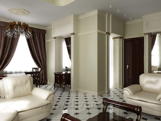 Интерьер коттеджа, находящегося в пригороде Екатеринбурга выполнен в "классике". Двухсветная гостиная, оформленная в светлых тонах запоминается благодаря обилию света и легкости.