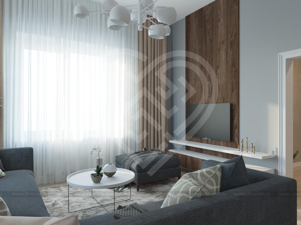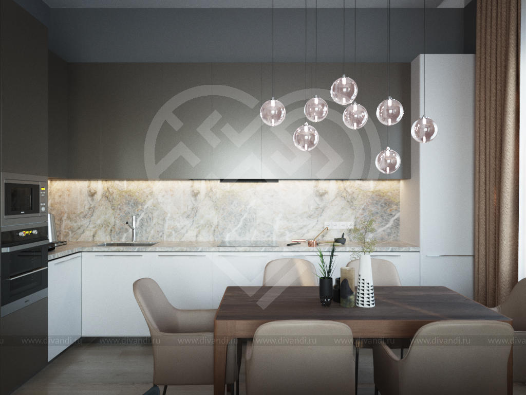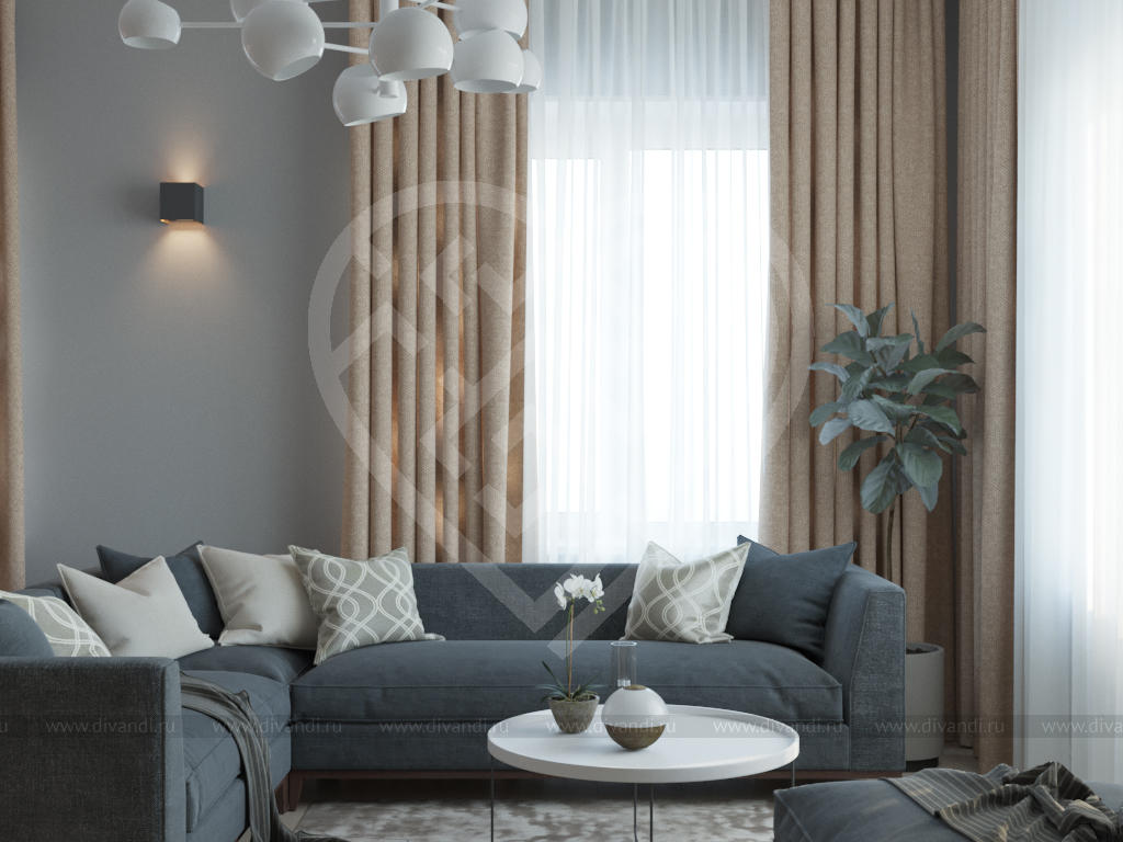 Дизайн интерьера кухни-гостиной дома в Подмосковье