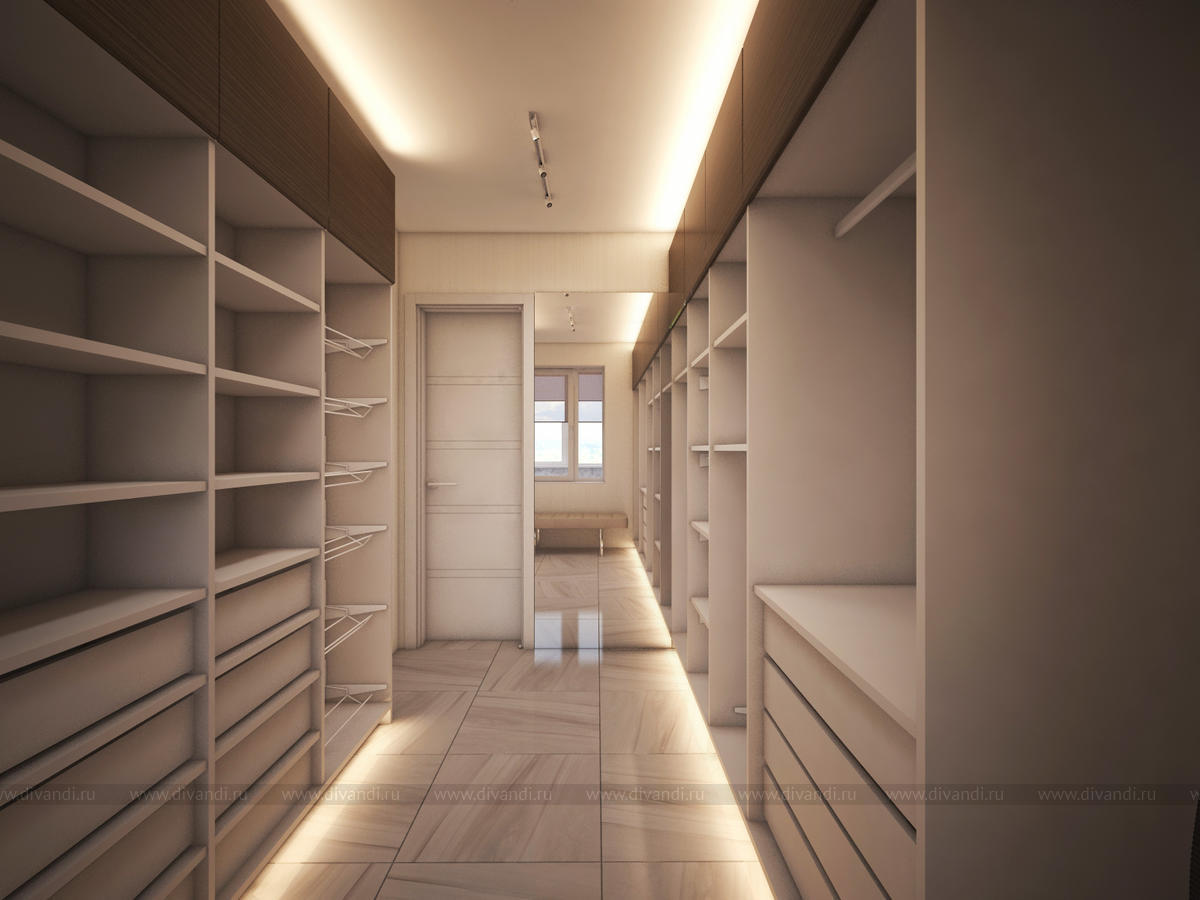 Большая площадь квартиры получилась за счет объединения двух квартир расположенных в одной секции. Вся квартира разделена функционально на две зоны: общественную, куда вошли гостиная с кухней, гостевой комнатой, и приватную, в которой разместились две детские, спальня и гардеробная.