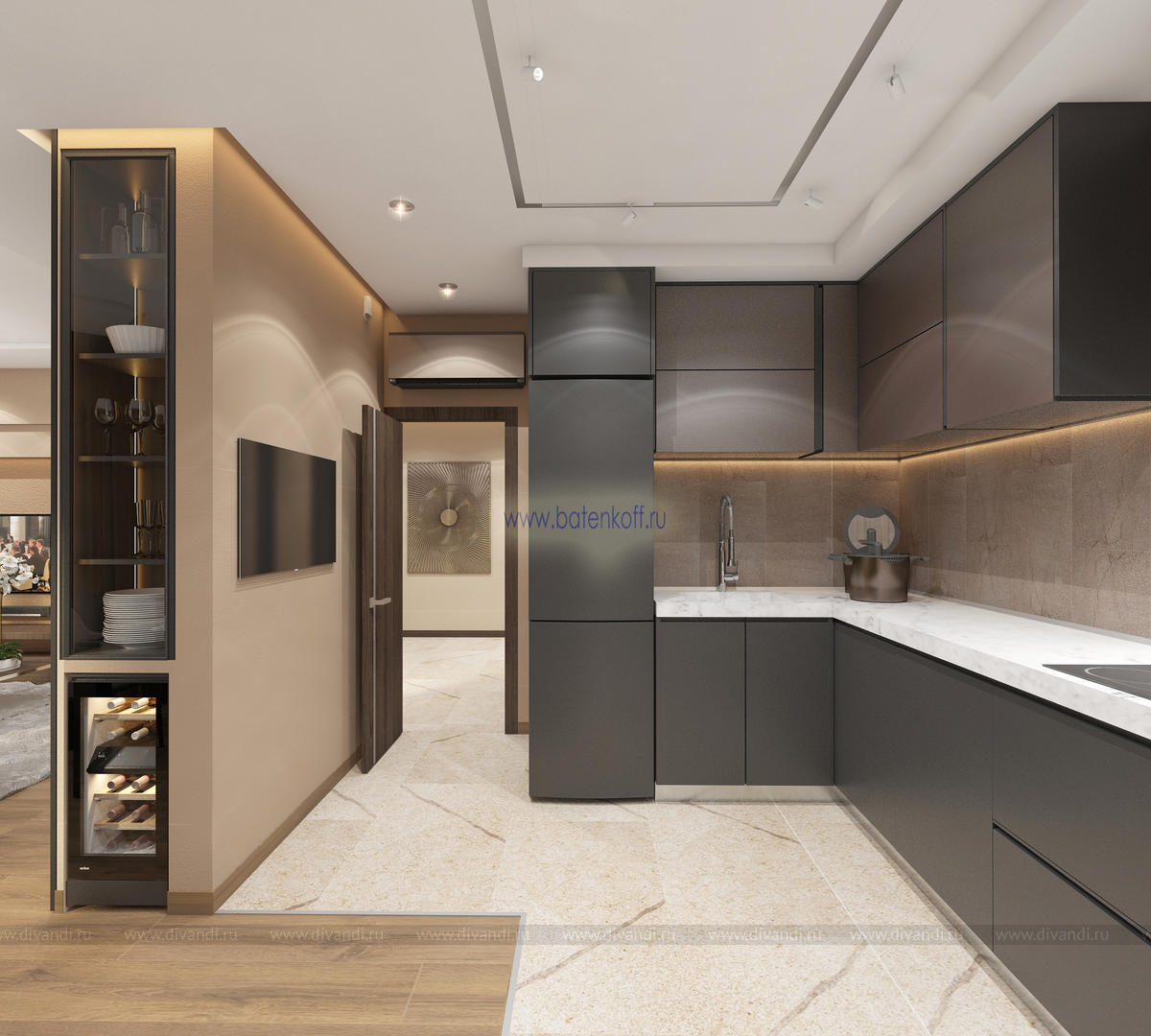 Тип проекта: квартира, спальня, кухня, ванная, гостиная