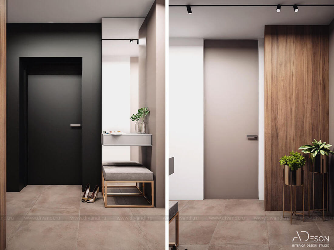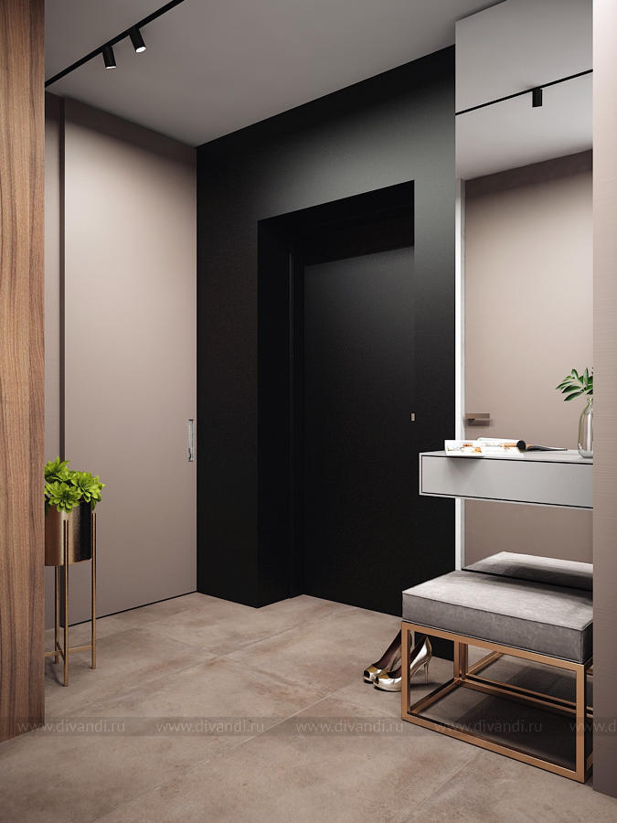 Проект двухкомнатной квартиры в ЖК Арбатский. Концепция интерьера строится на сочетании теплого и холодного. Поэтому в основе лежат такие материалы, как бетон и дерево.