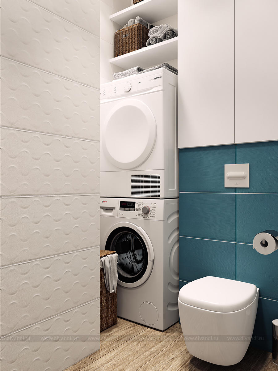 Санузел и постирочная в двухкомнатной квартире в Жилом комплексе Мечта