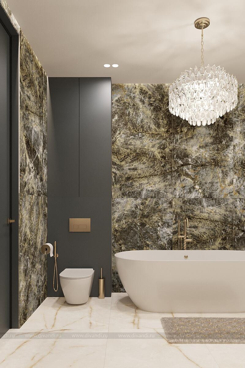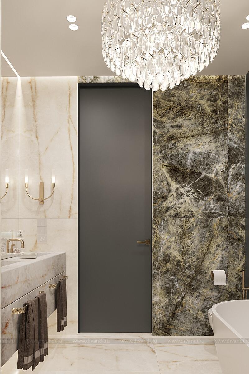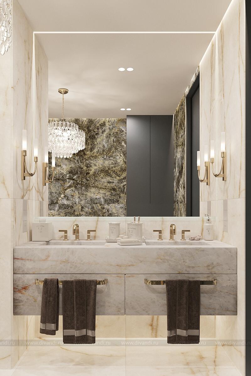 Роскошная ванная комната в современном стиле с элементами классики. Ключевые особенности дизайна: