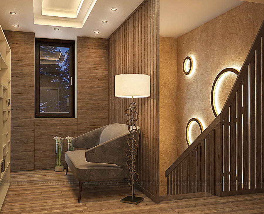 Дизайн интерьера отражает активную и насыщенную жизнь молодых хозяев дома. Коттедж имеет удобную и функциональную планировку. Решения холлов первого, второго этажей и лестницы – стали центральной идей. Современный свет создает атмосферу комфорта и респектабельности. Простые линии и графичность интерьера формируют целостное, динамичное и современное пространство.