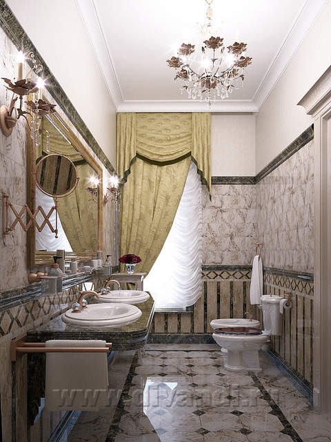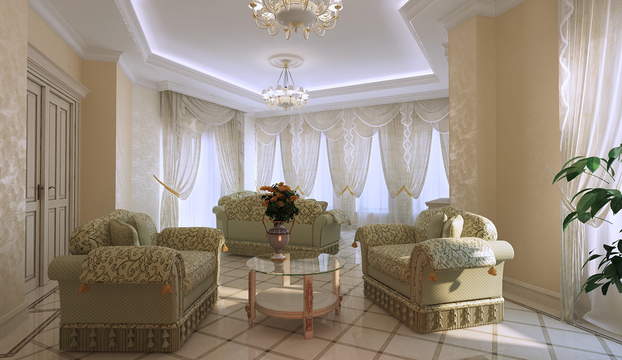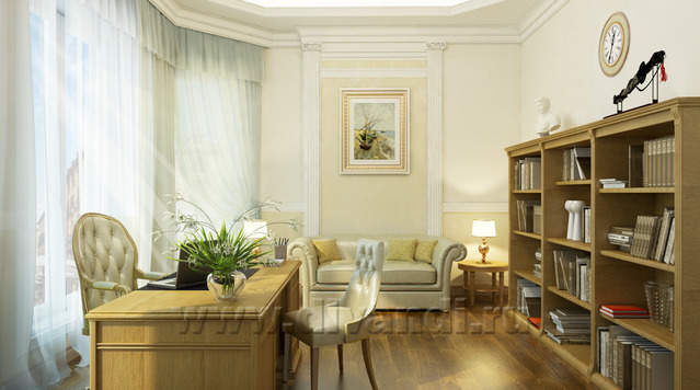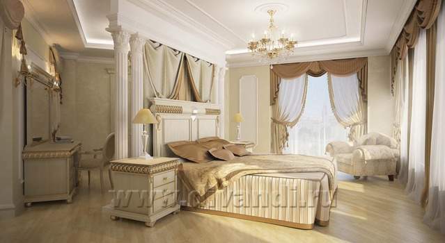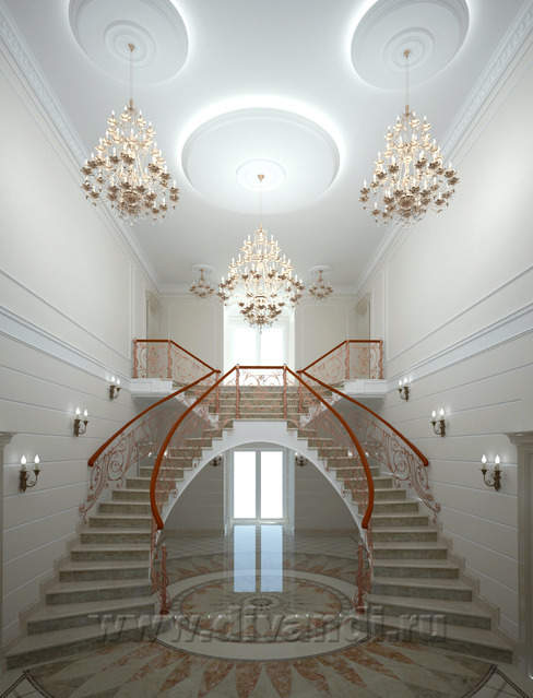 Исходя из поставленной задачи — создать респектабельную, элегантную и одновременно уютную среду для отдыха, было выбран стиль неоклассики. В концепции автор намеренно отказался от грузной дворцовости и исторических контекстов, чтобы гармонично вписаться в средиземноморский колорит среды. Предложены натуральные и благородные материалы дерево, металл, камень. В отделке пола и санузлов использовано около 10 оттенков мрамора. Все двери и часть мебели выполнены по эскизам автора проекта. Такие детали интерьера как напольное панно в холле и рисунок кованых перил также разработаны автором.