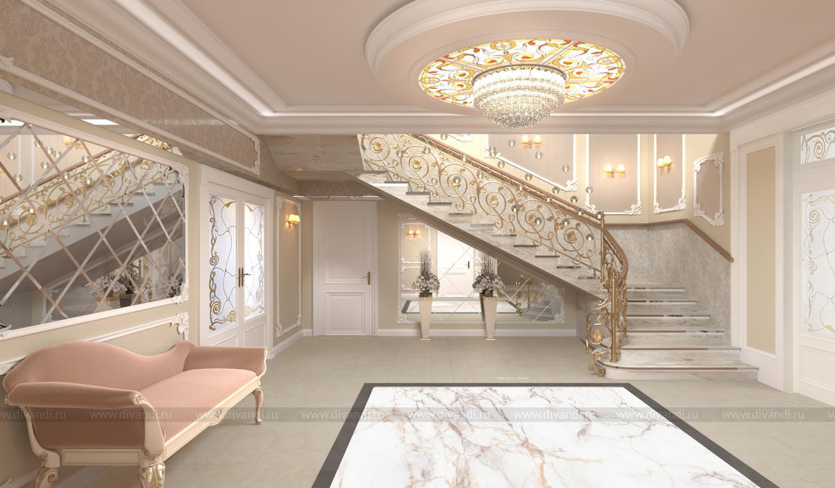 Дизайн интерьера холла 1 этажа жилого ДОМА