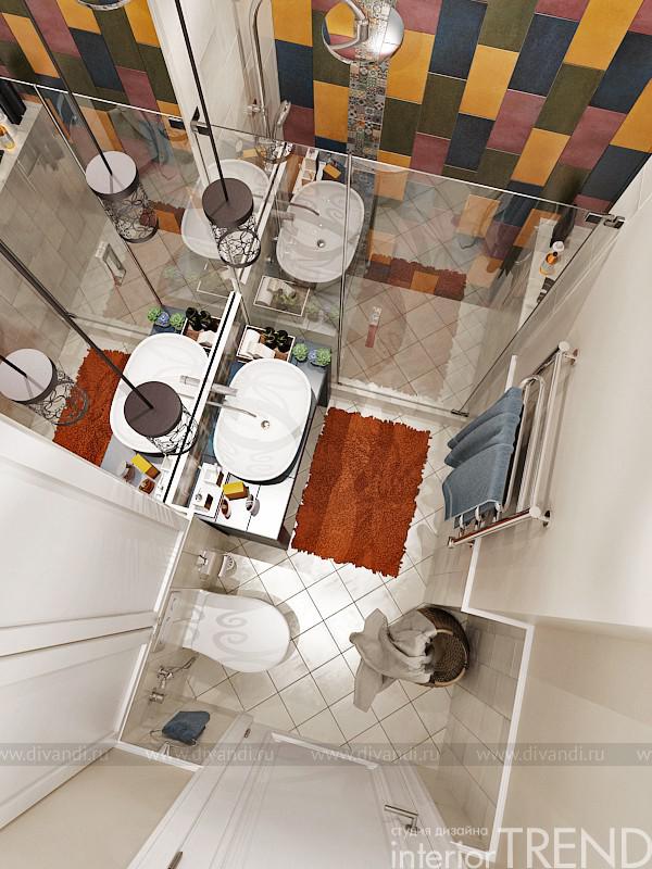Два санузла в этом проекте, на первом и втором этаже являются абсолютно оригинальными и нестандартными. Они пропитаны живой энергией. Детальная проработка и наполнение завораживают, но при этом они разные, но схоже стилистически. Функционально все отточено и выверено. Места для хранения, большая зона у раковины, подвесные светильники рядом с зеркалом, крючки для полотенец, зона душа.